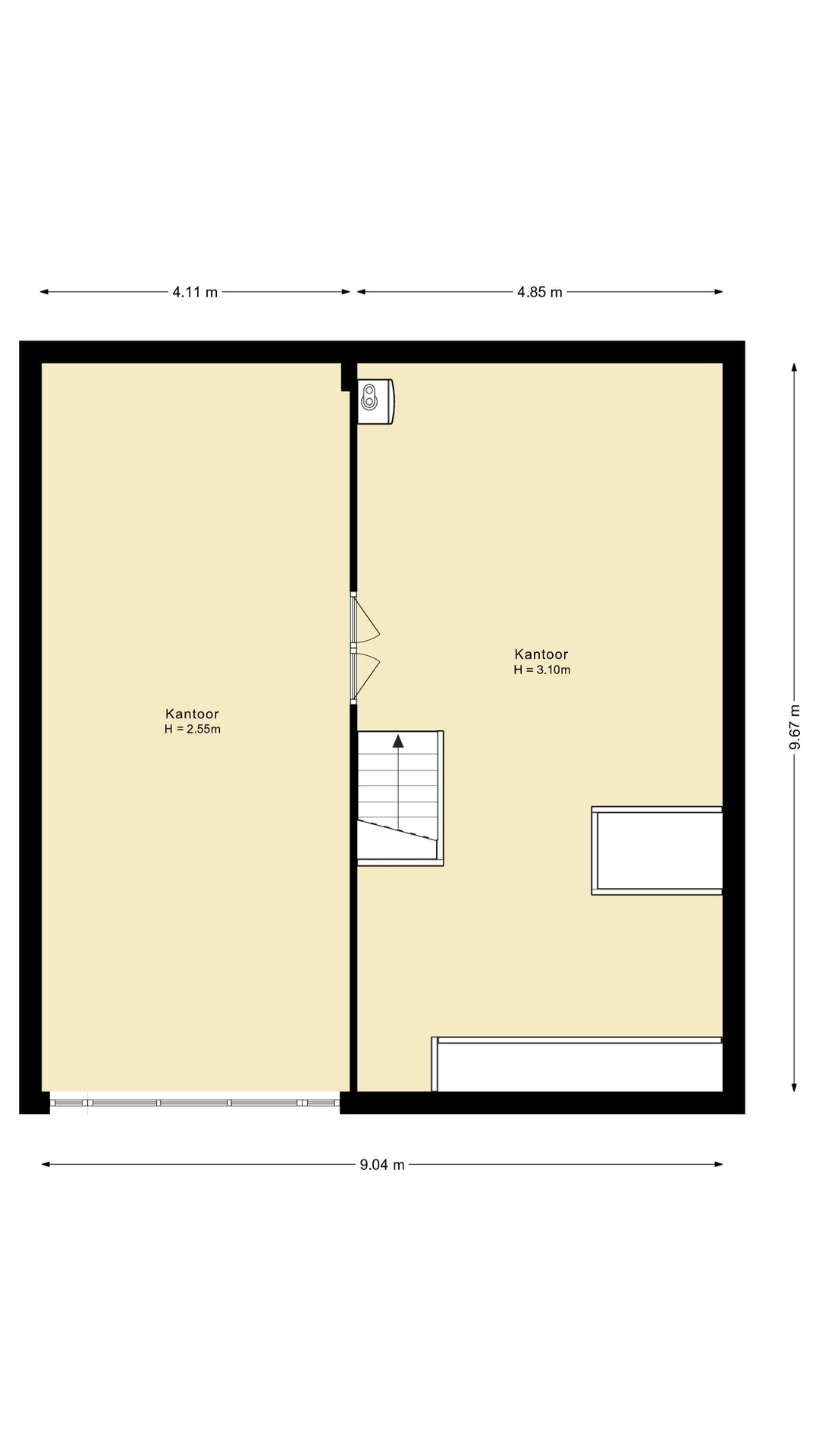 Verdieping: 2 grote kantoorruimtes