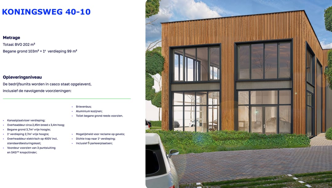 Deze unit onderscheid zich van de meeste andere units op deze locatie doordat de begane grond is voorzien van een glazen gevel in plaats van de standaard overheaddeur waardoor deze unit dus zeer geschikt is voor de functie van bijvoorbeeld een showroom. De eerste verdieping is een fantastische kantoor-werkplek.