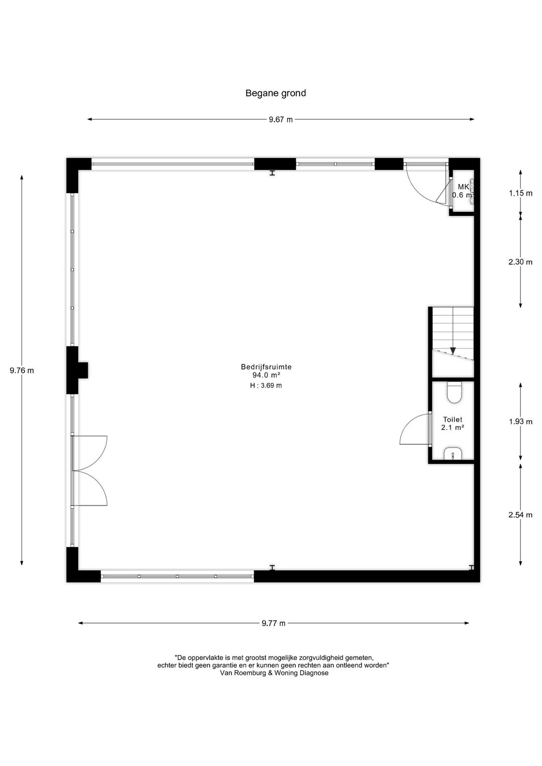 - Overheaddeuren, krachtstroom, betonvloer, toilet en te openen ramen
