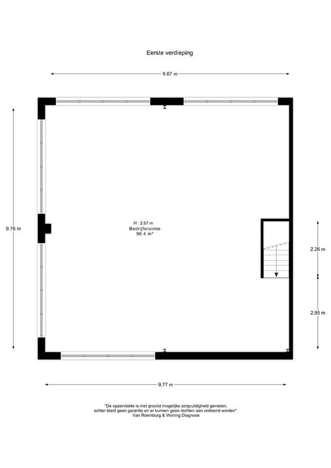 De vrije hoogte op de begane grond bedraagt 3,70 m. en op de verdieping 2,70 m.
