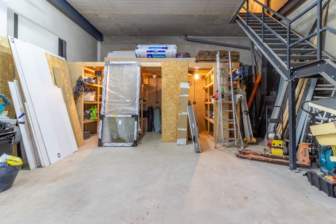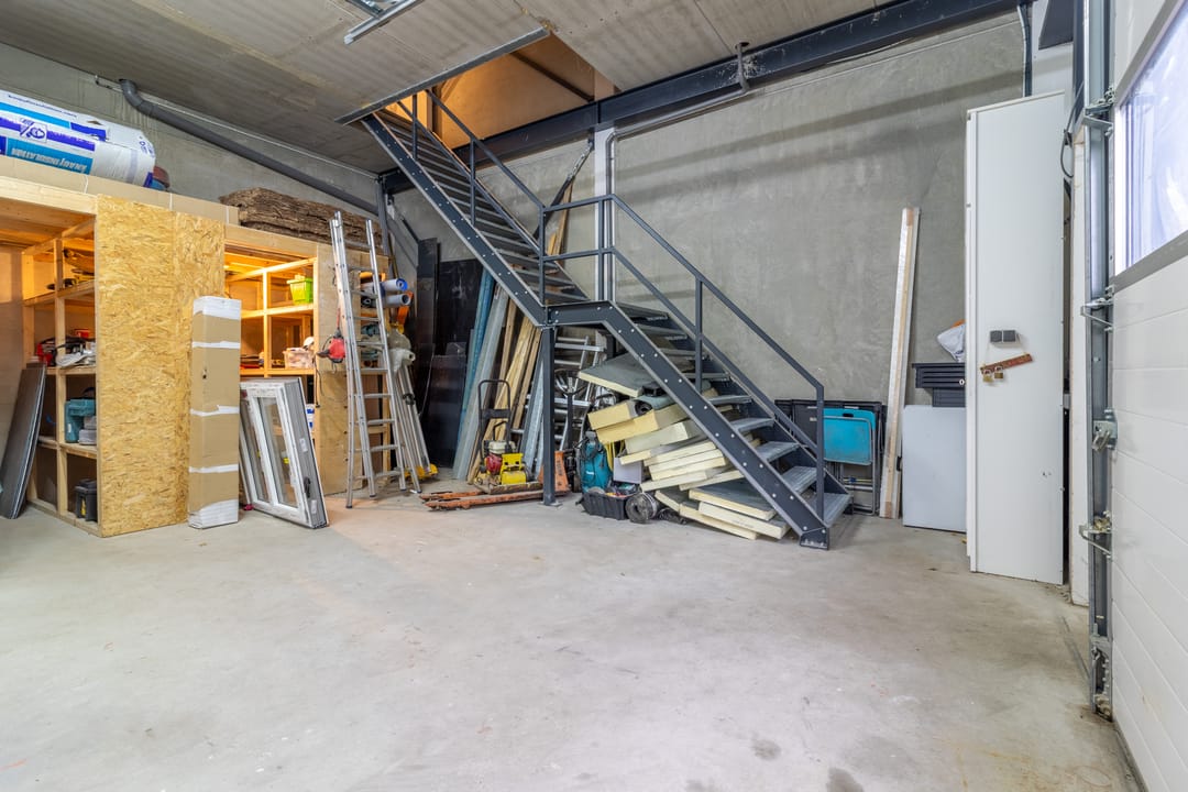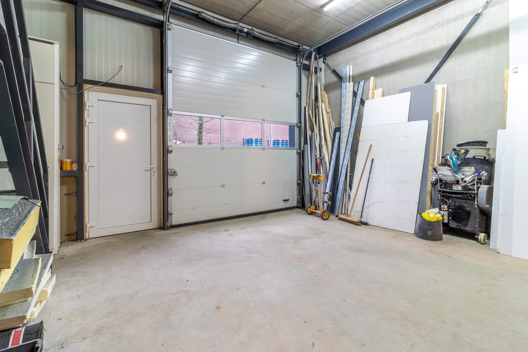 - Lichtstraten, overheaddeuren, betonvloer, toilet, inbouwarmaturen en te openen ramen