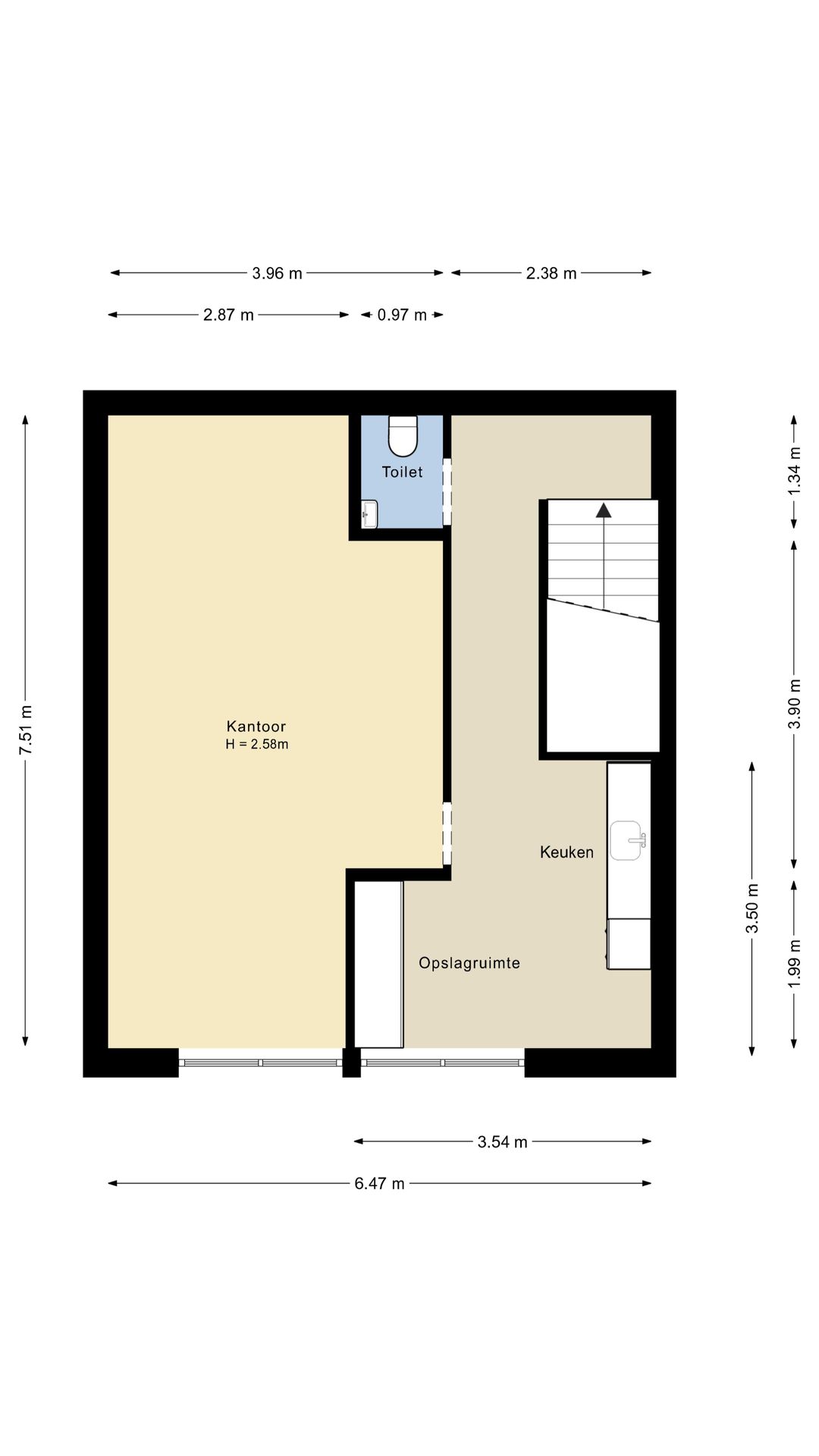 - begane grond: circa 58 m² bedrijfsruimte, uitstekend te gebruiken als opslag of werkplaats
