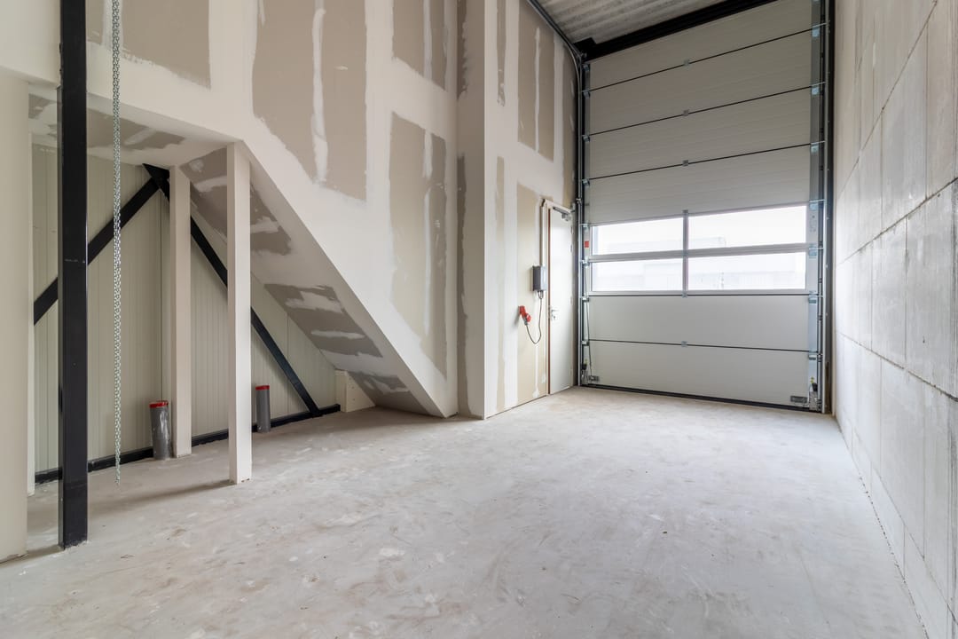 - Overheaddeuren, krachtstroom, betonvloer en te openen ramen