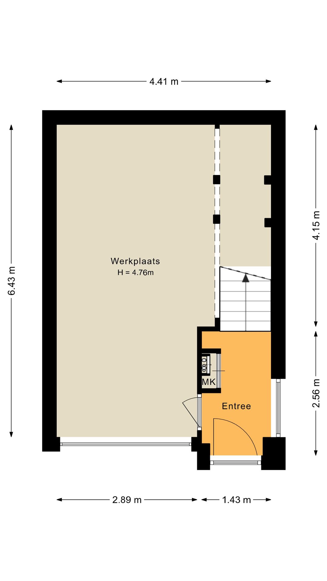Elke unit bestaat uit een begane grond (ca. 35 m2) voorzien van meterkast en overheaddeuren (2,75 x 4,5 m), en één verdiepingsvloer (ca. 36m2) met een groot raampartij.