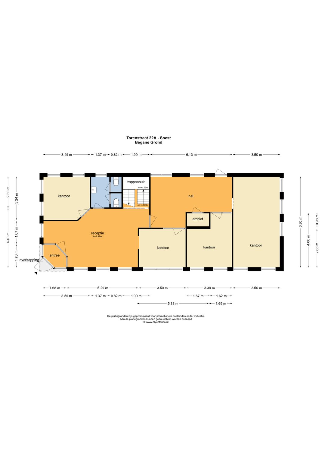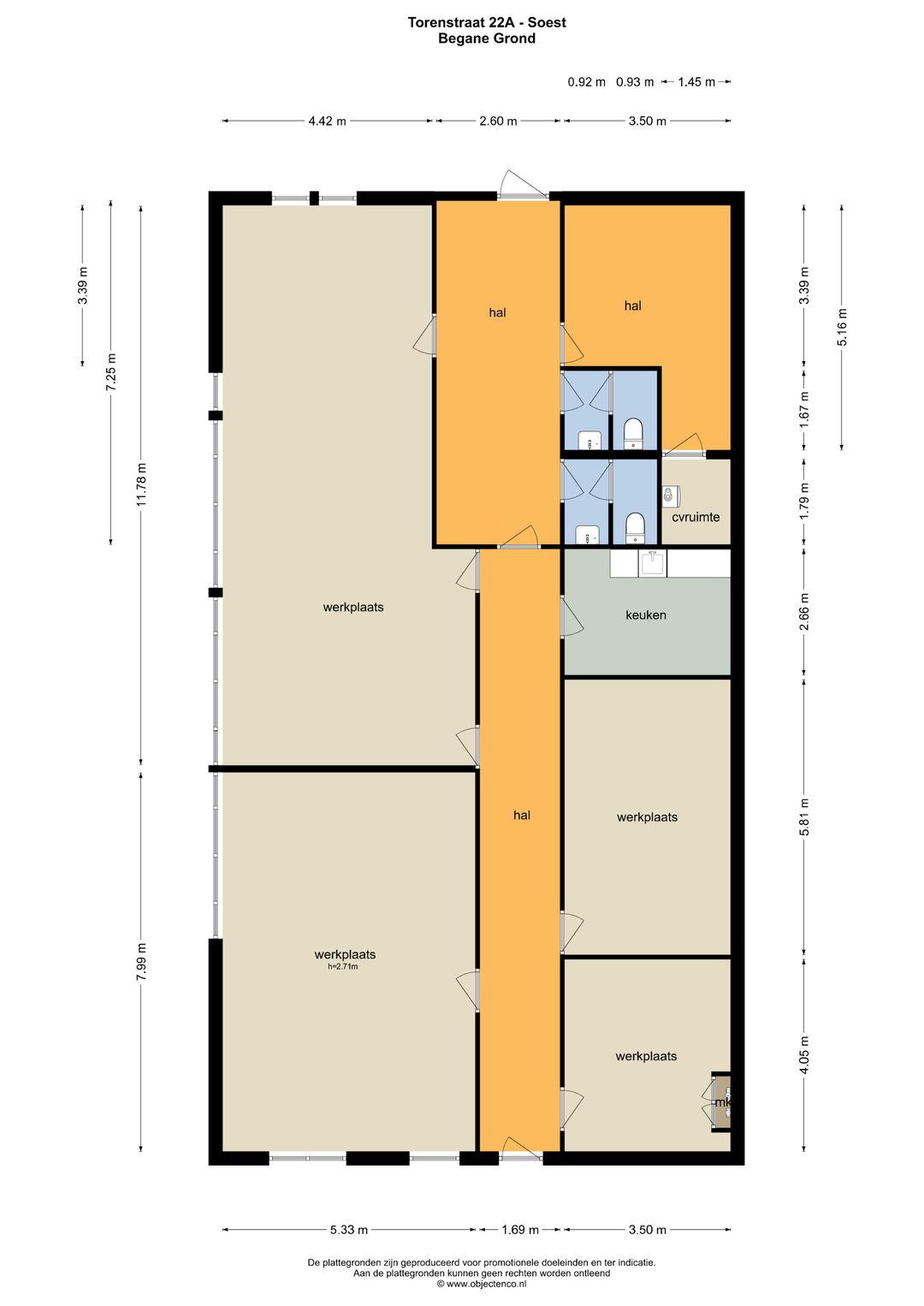 • hoogte circa 4 meter, verlaagd met systeemplafond;