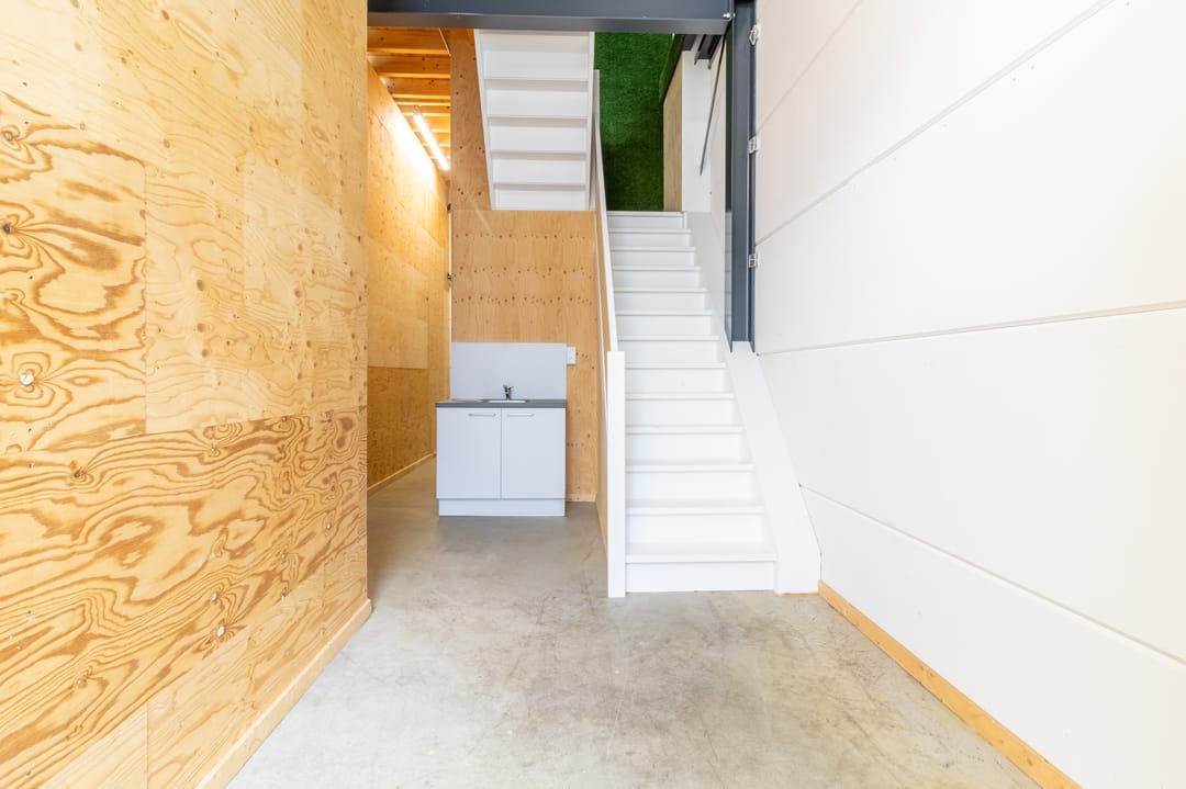- Houten trap naar de kantoorruimte