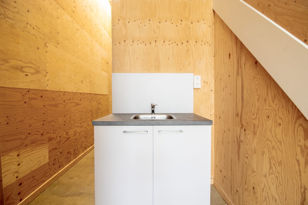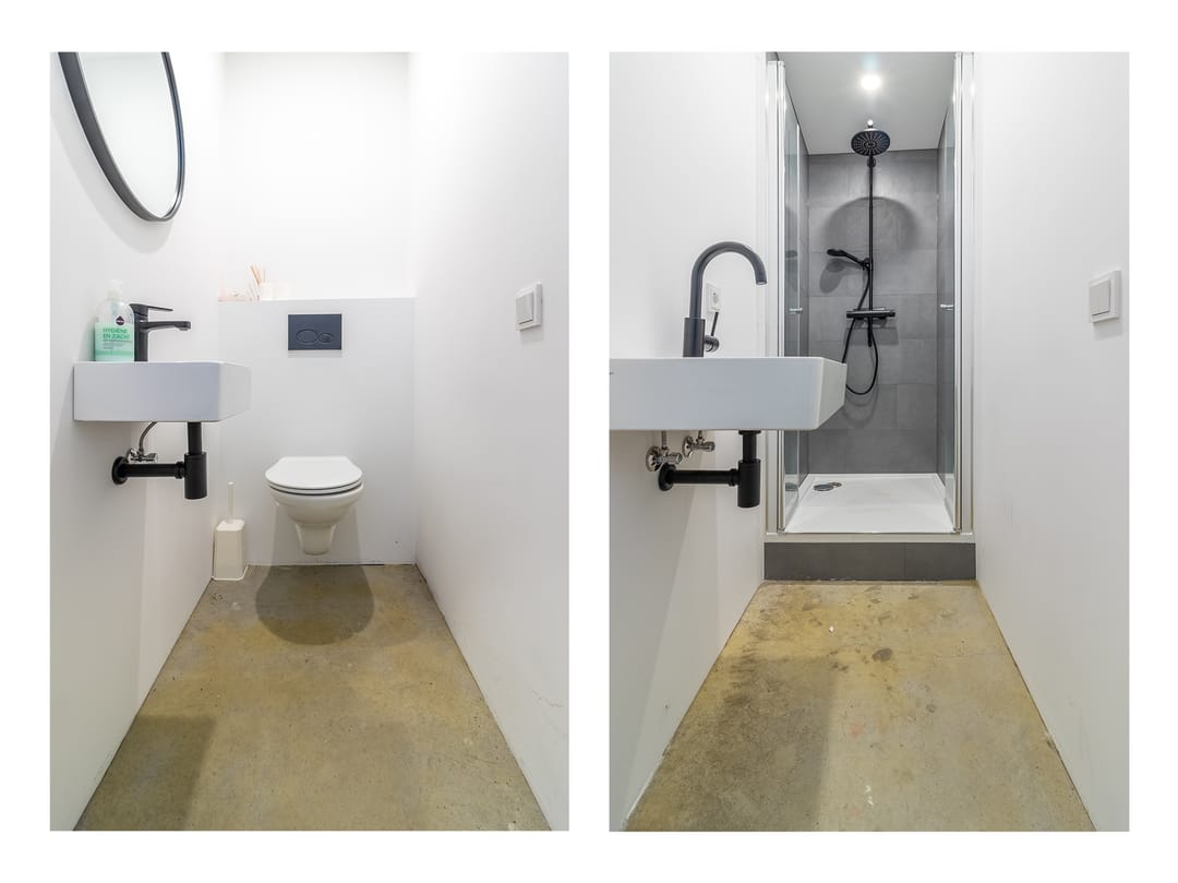 De begane grond is ideaal als opslagruimte of werkplaats, maar kan ook prima dienen als kantoor. De ruimte beschikt over een loopdeur, vloerverwarming, toilet en zelfs een douche.