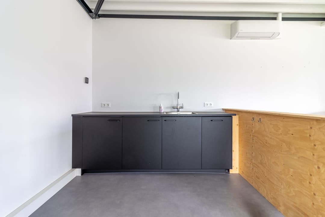 De eerste verdieping is ingericht als lichte en comfortabele kantoorruimte. Dankzij de grote ramen, airconditioning en geïntegreerde verlichting is het een prettige werkomgeving met een professionele uitstraling. Een gedeelte van de ruimte is d.m.v. glazen deuren af te sluiten. Tevens is er een pantry aanwezig.
