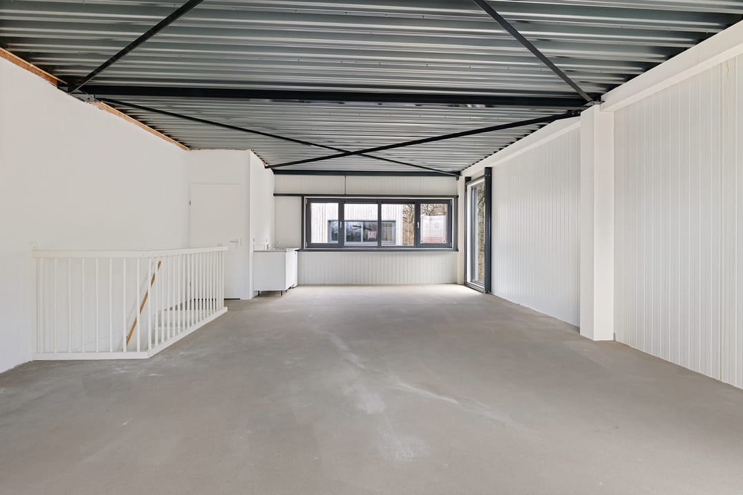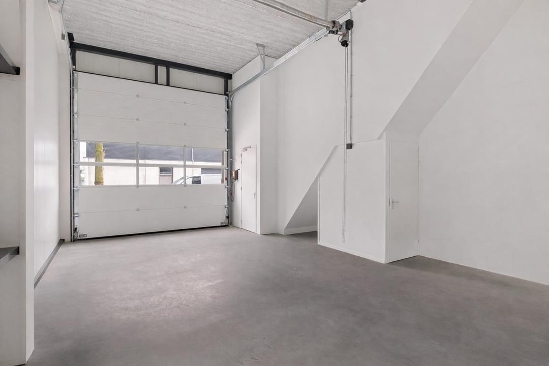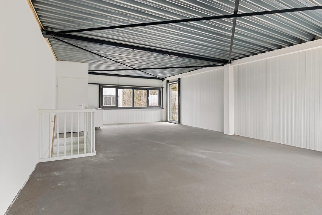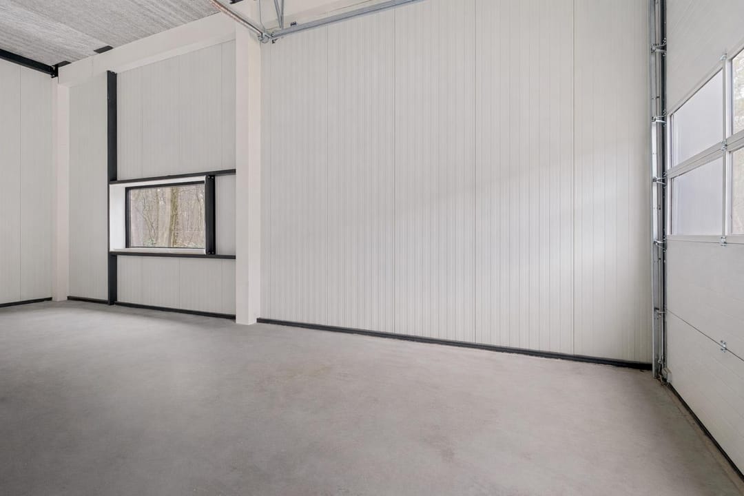 - Overheaddeuren, betonvloer, toilet, pantry en te openen ramen