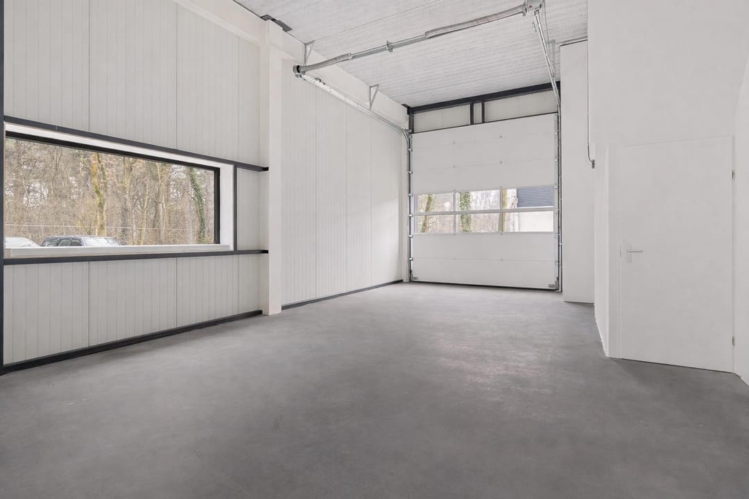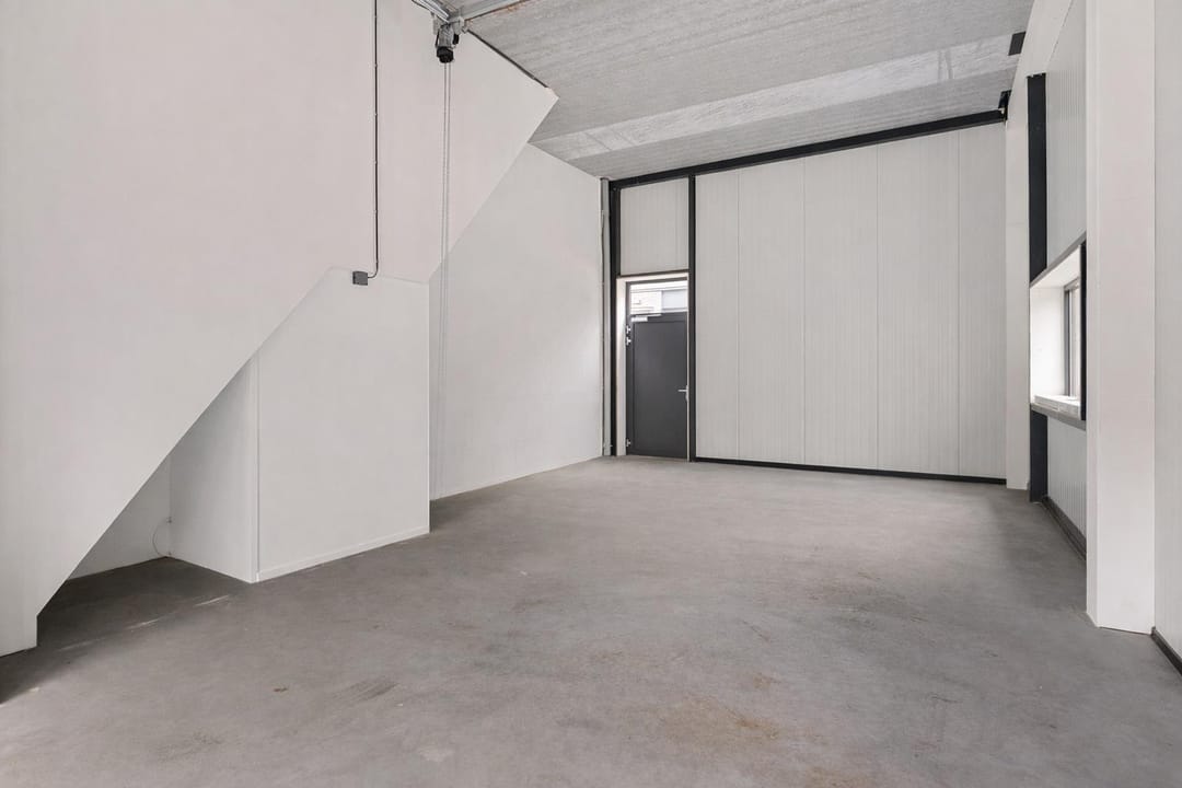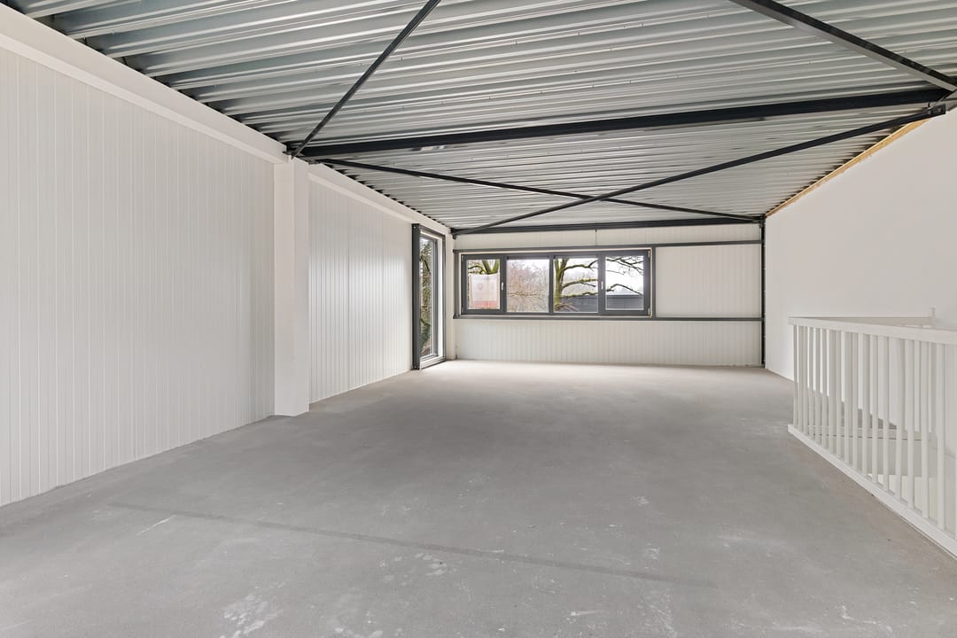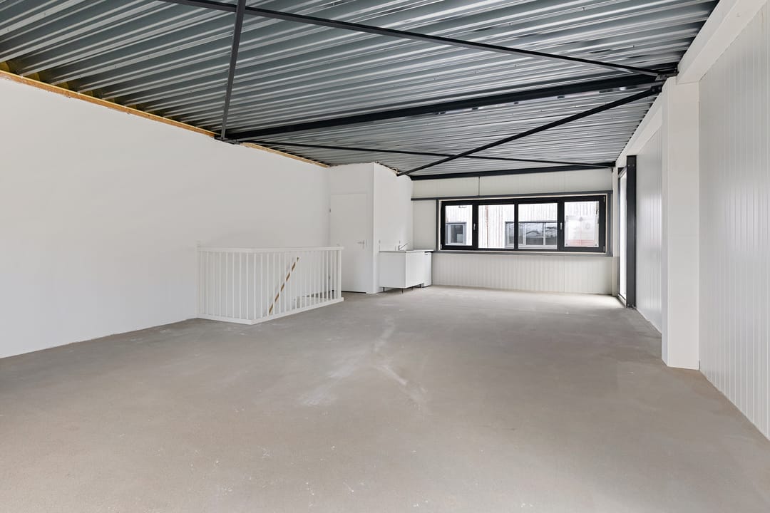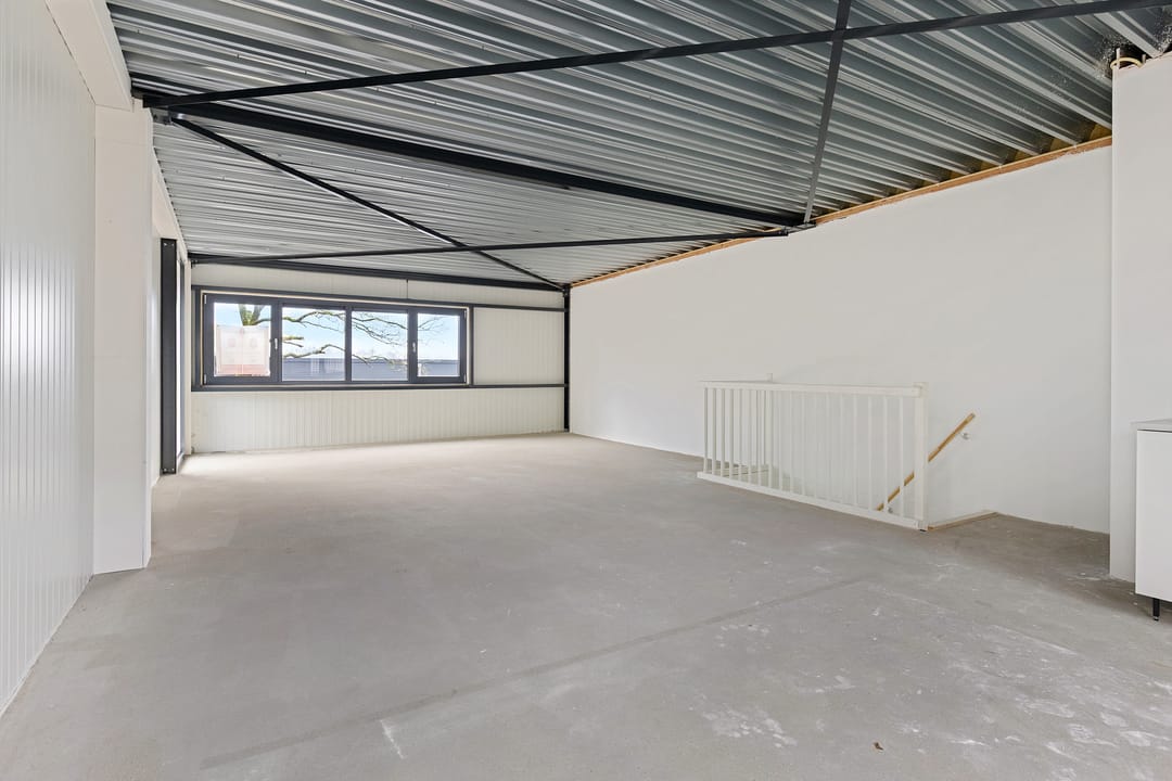 - Overheaddeuren, betonvloer, toilet, pantry en te openen ramen