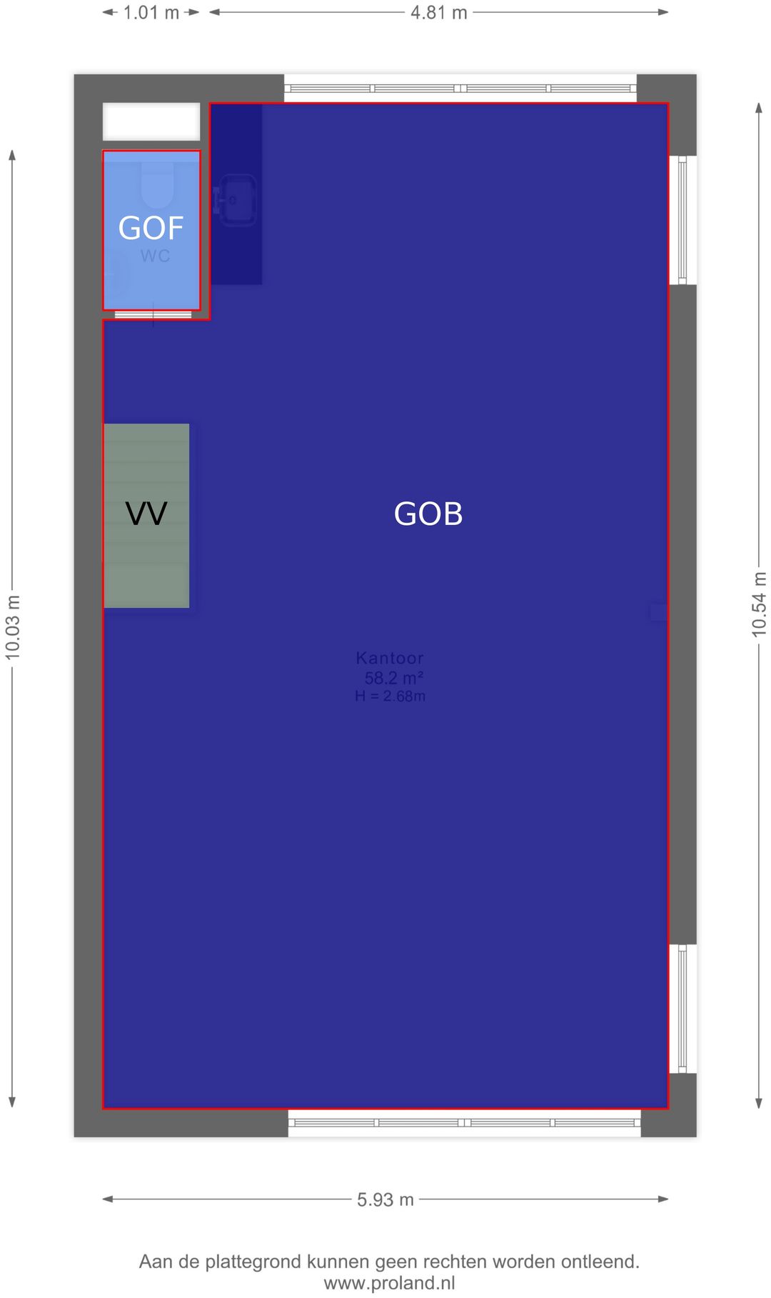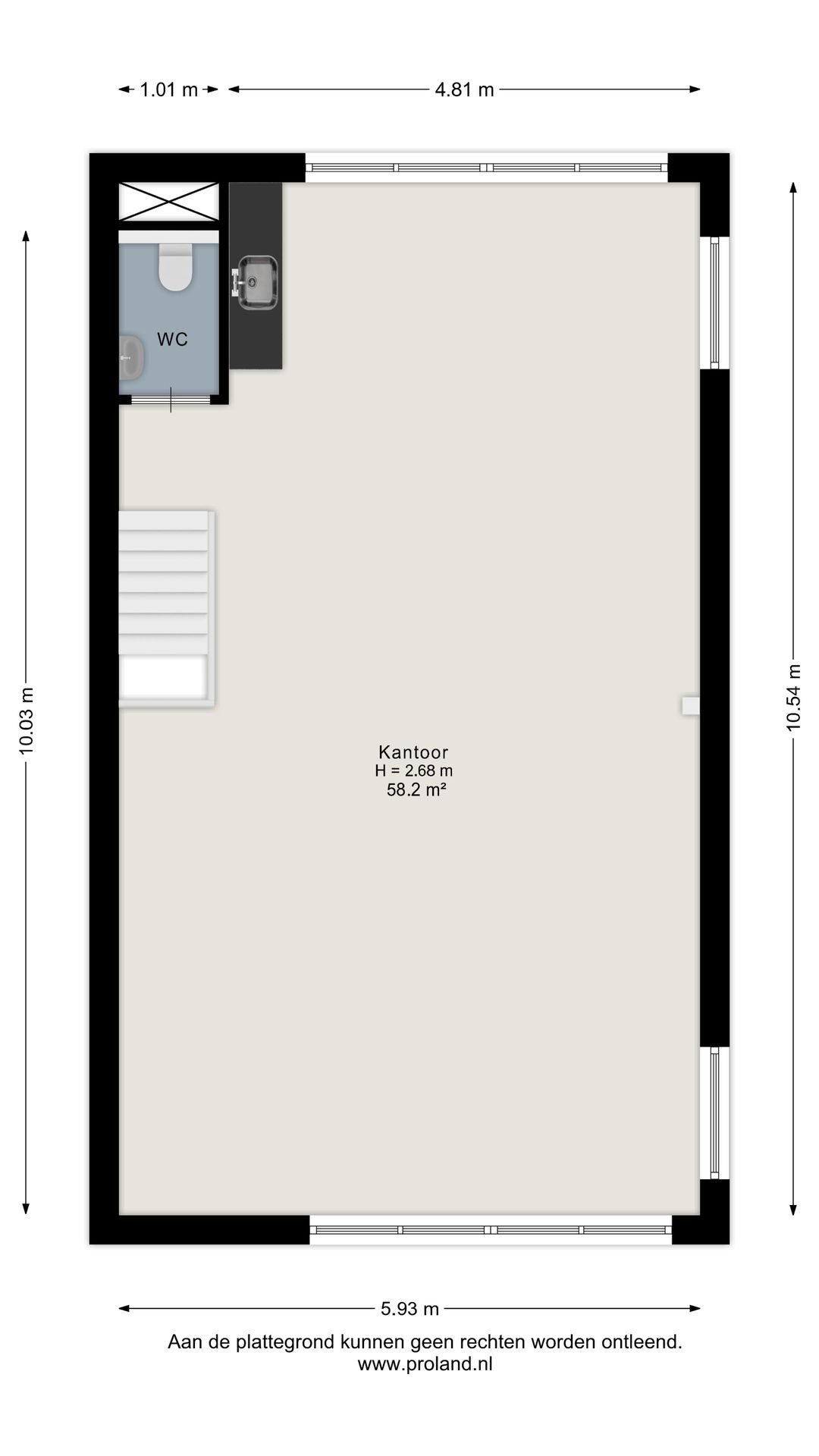 - Verdieping: ca. 60 m² kantoorruimte, bereikbaar via vaste trap. BVO 71m2