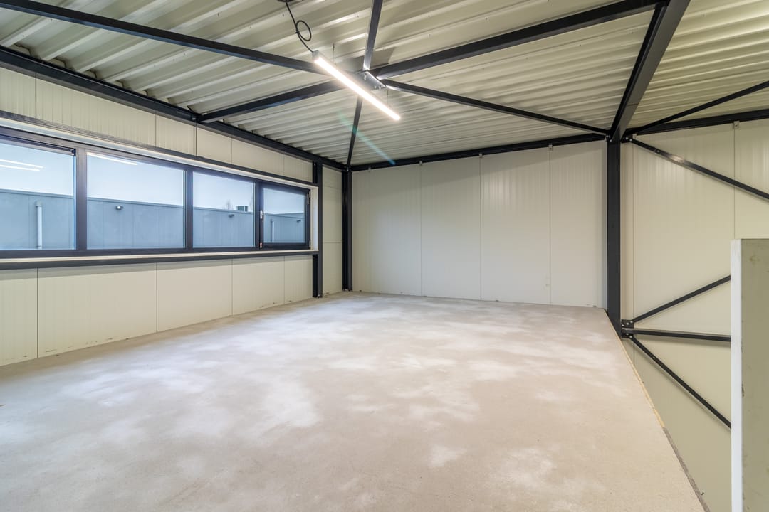 - Lichtstraten, overheaddeuren, betonvloer, toilet, pantry en te openen ramen