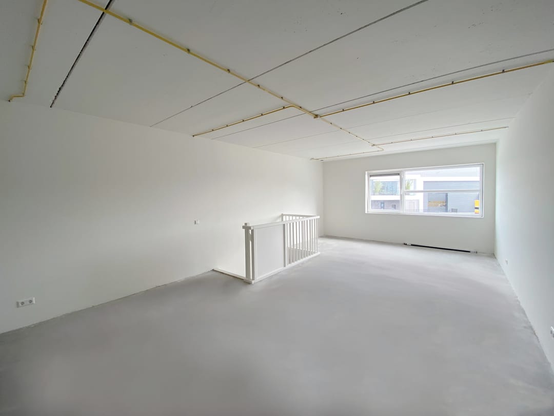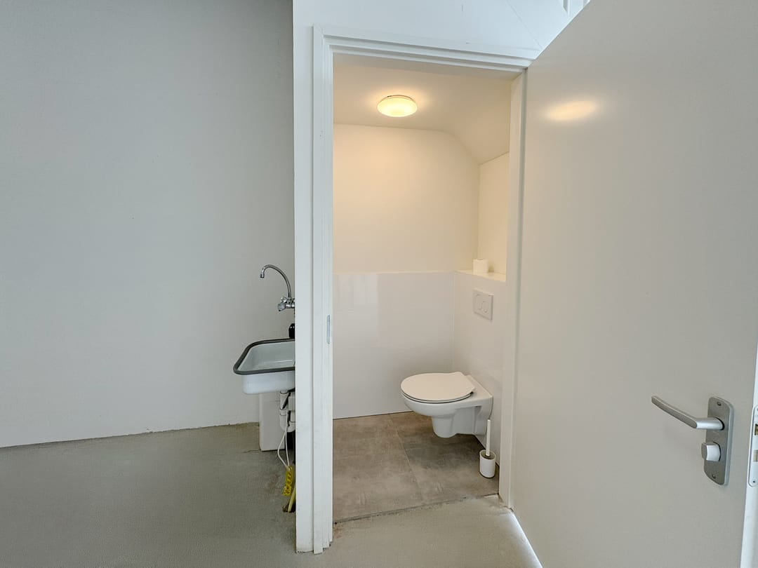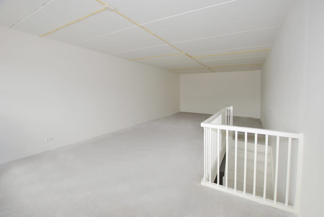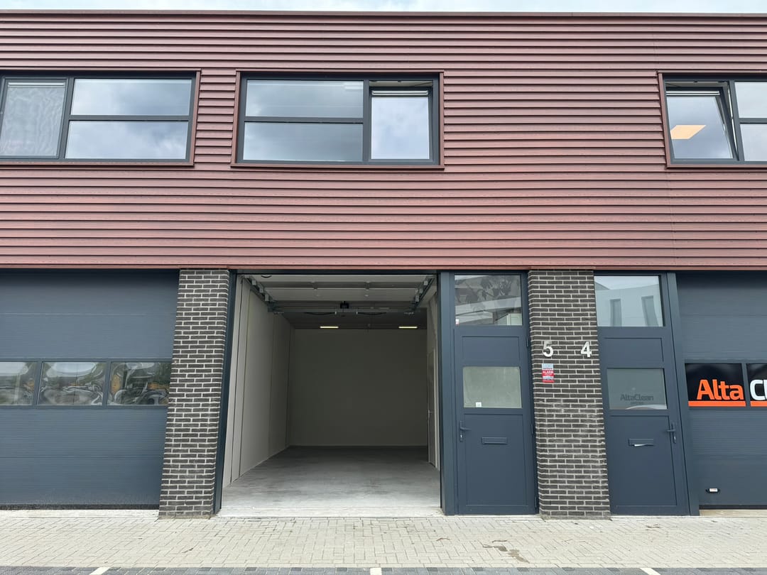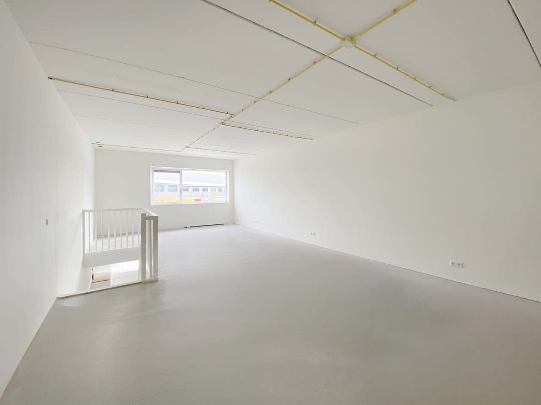 - Overheaddeuren, betonvloer, toilet en te openen ramen