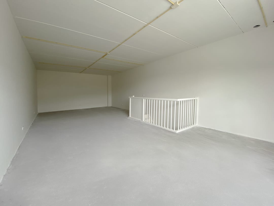 Op de begane grond bevindt zich de bedrijfsruimte en de toiletruimte. De verdiepingsvloer is één grote vrije ruimte.