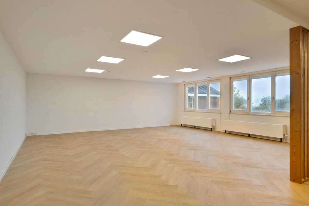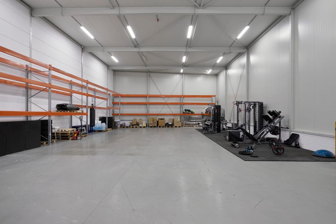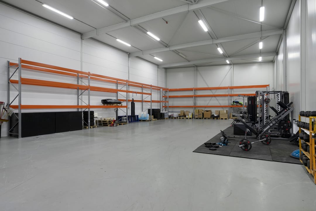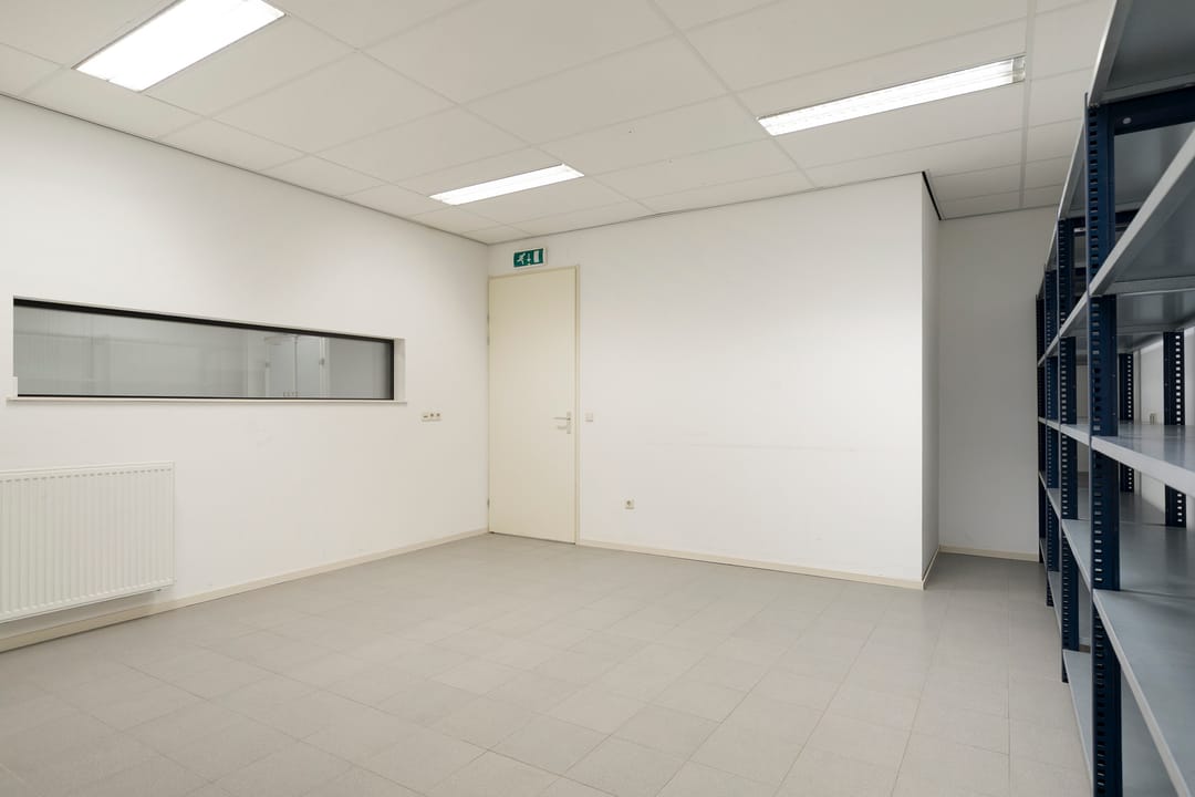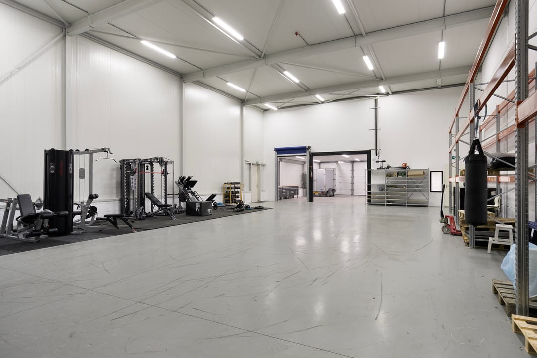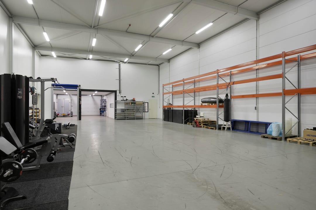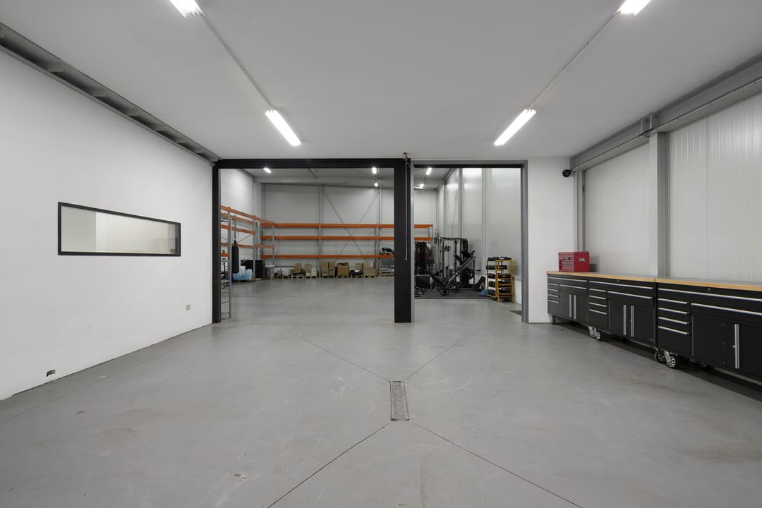 - Overheaddeuren, betonvloer, toilet, pantry, airconditioning, inbouwarmaturen en te openen ramen