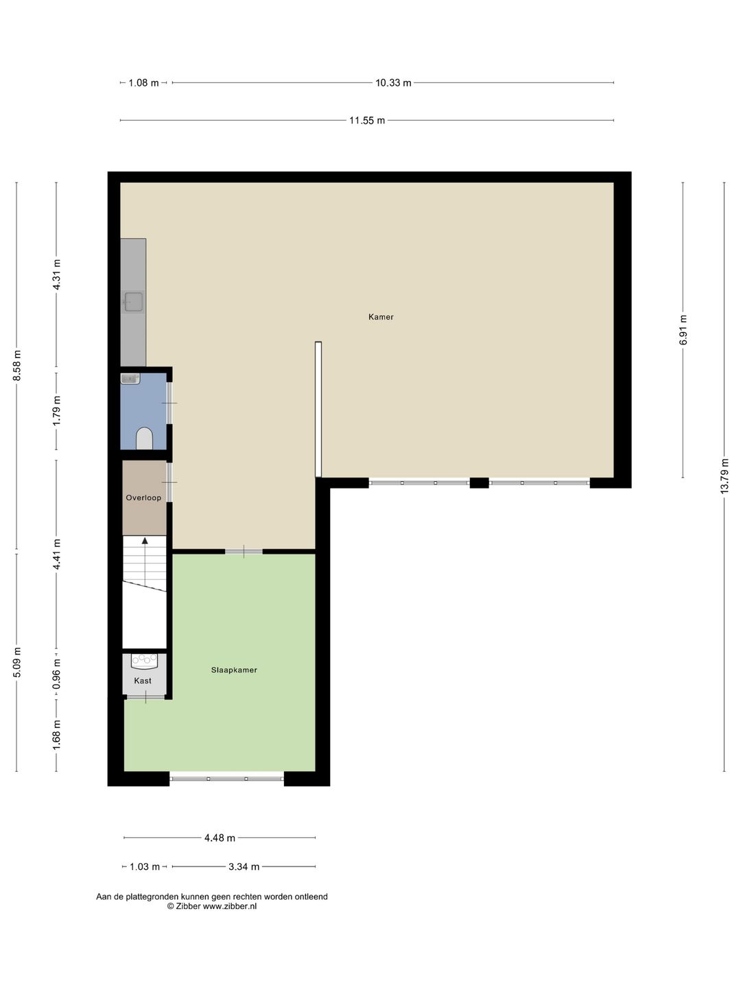 De links naast de woning gelegen bedrijfsruimte (Boerenkamplaan 109 c) is groot circa 545 m2 BVO en 492,25 m2 VVO, verdeeld over 122,6 m2 kantoorruimte, 320 m2 bedrijfsruimte, 22,57 m2 verkeersruimte en 27,08 m2 toilet en facilitaire ruimte.