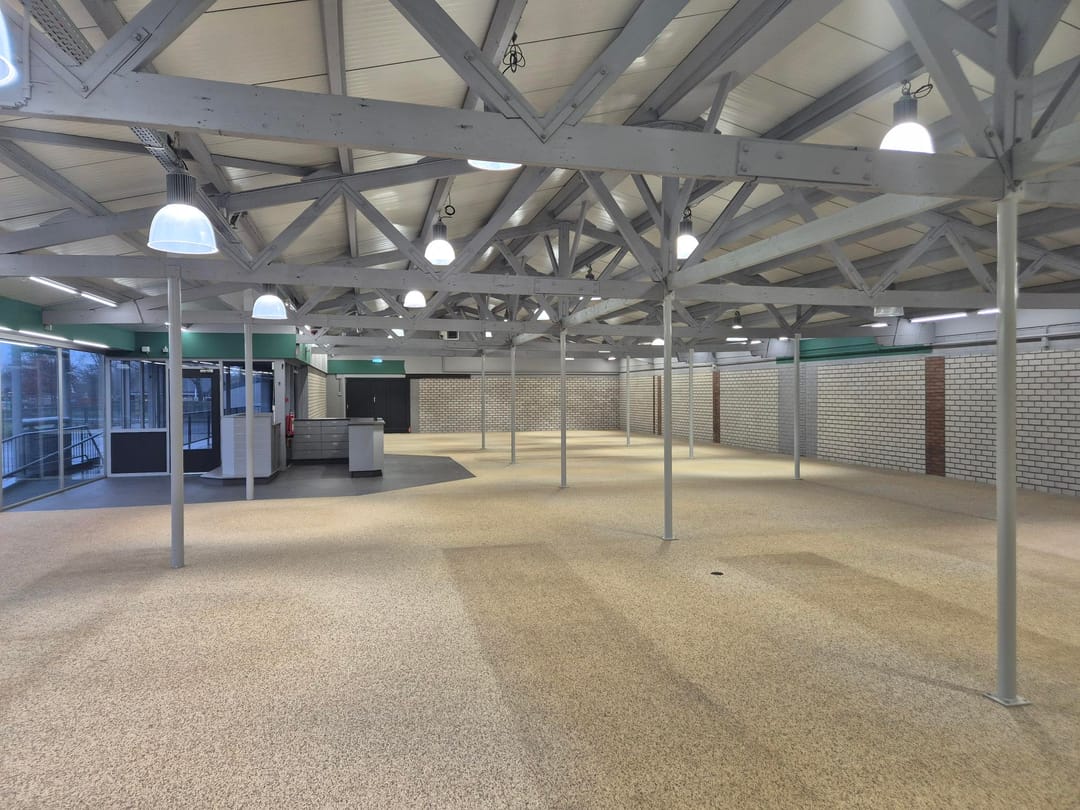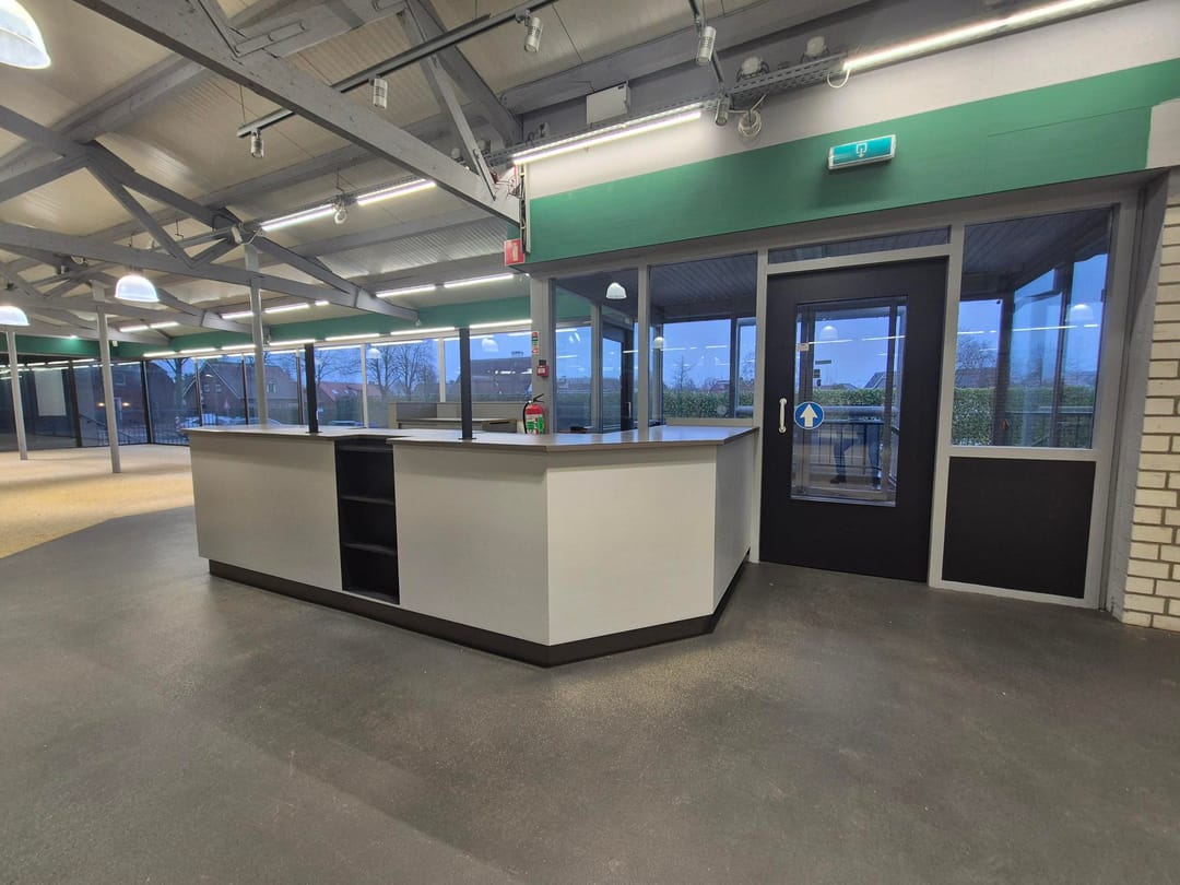 De winkelruimte is groot circa 405 m2 en voorzien van een siergrintvloer, houten spanten in het zicht, isolatieglas, een gasgestookte heater, een kassabalie en een entreesluis met automatische deuren.