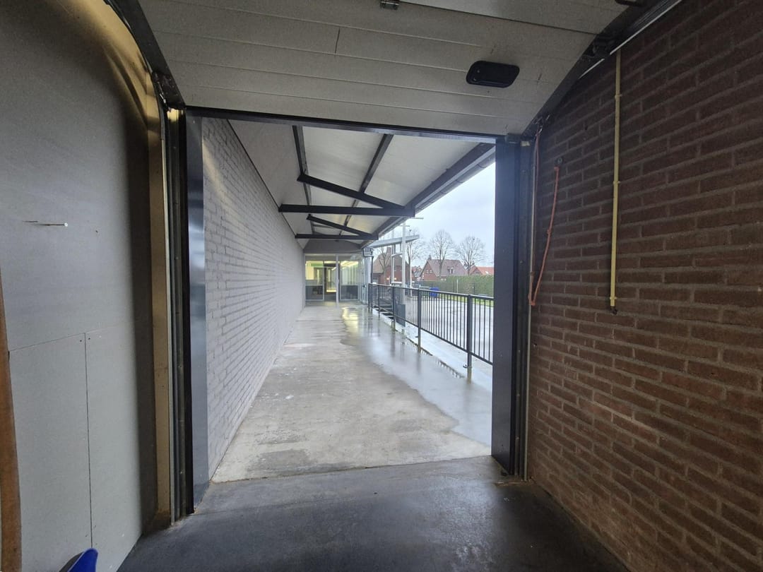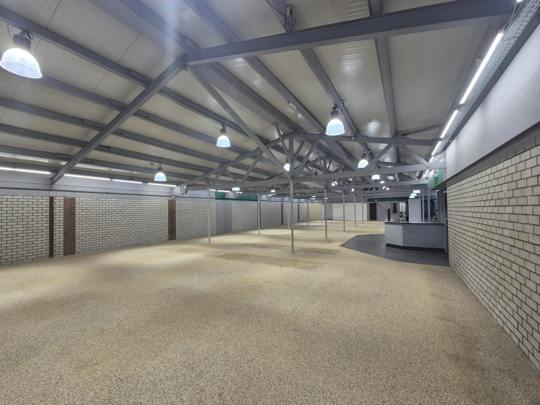 - Overheaddeuren, betonvloer, heater, toilet, pantry, inbouwarmaturen en te openen ramen