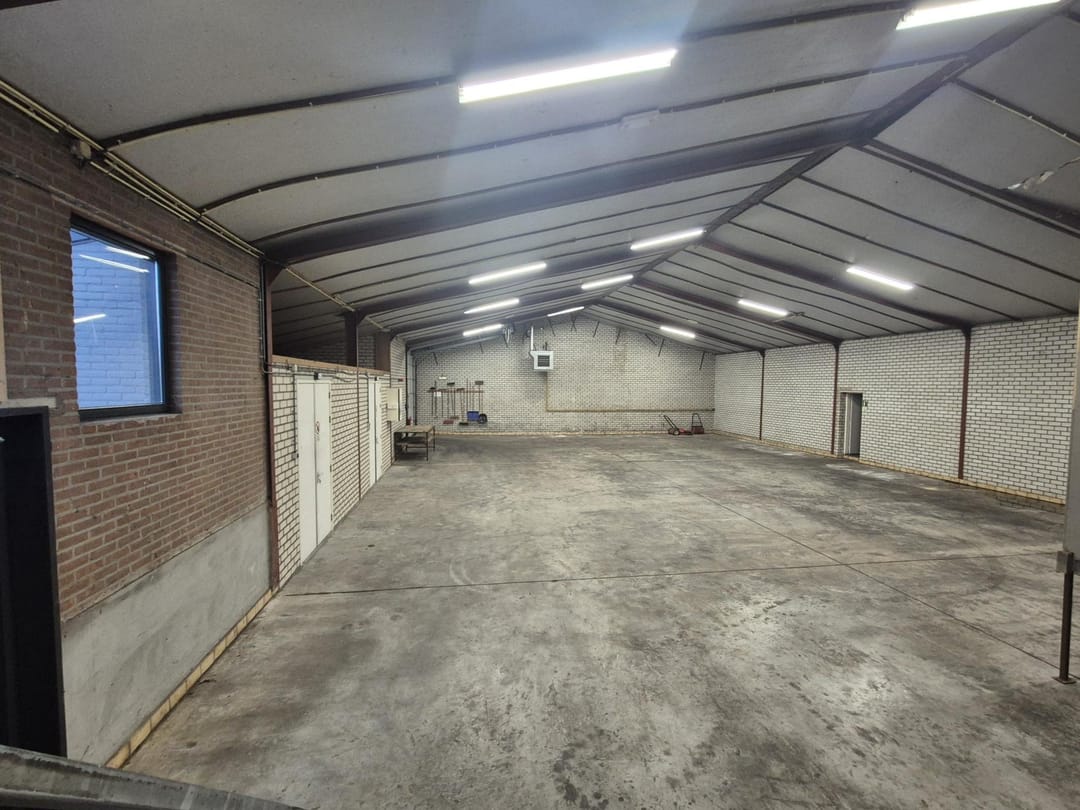 Aan de achterzijde bevindt zich, een nivo lager, een werk-/opslagruimte, groot circa 315 m2 met een betonvloer, LED-verlichting, een gasgestookte heater en een (vrachtwagenhoge) electrisch bedienbare sectionaaldeur.