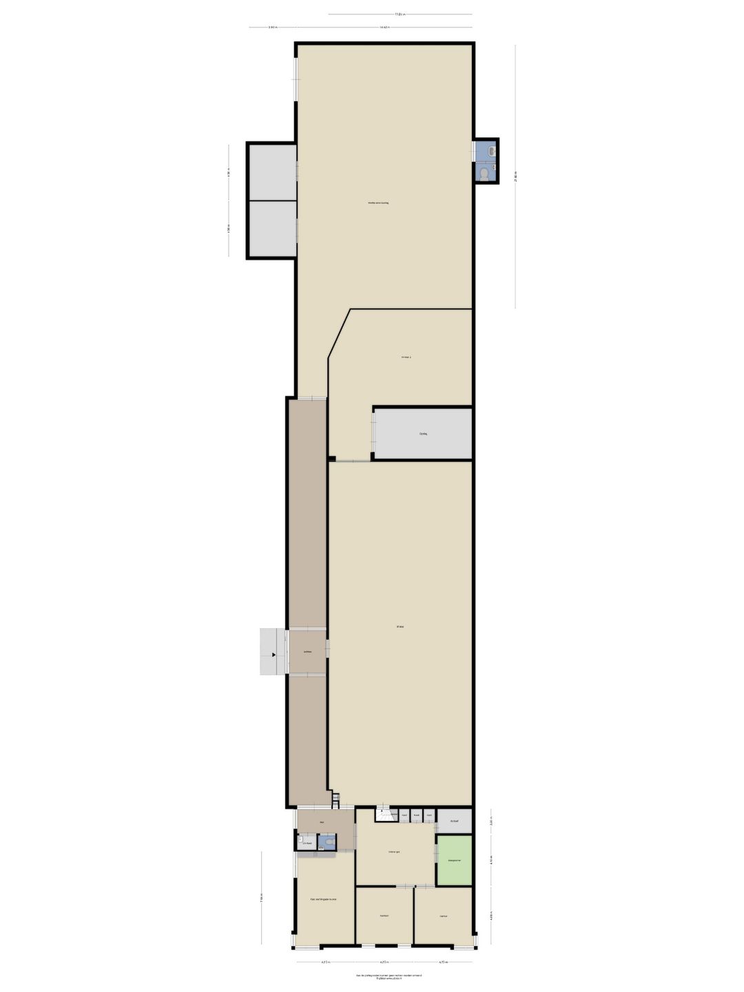 aan de voorzijde bevinden zich de kantoren. Entreehal met toiletruimte met een wandcloset, c.v.-ruimte en doorgang naar de kantine, de kantoren en het winkelgedeelte.