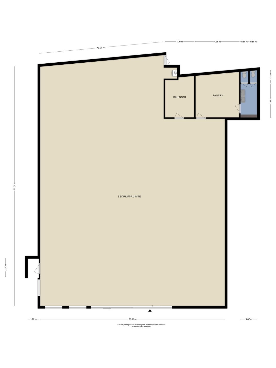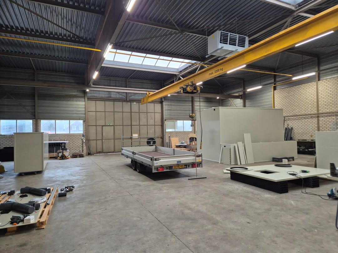 De bedrijfsruimte bestaat uit een bedrijfshal, groot circa 20,55 x 20,85 meter, met een vrije hoogte van 5.26 meter onderzijde stalen spanten. In de kopgevel zit een schuifpoort ter breedte van circa 6,85 meter met een loopdeur. In de zijgevel zit eveneens een loopdeur. De bedrijfsruimte is verder voorzien van lichtstraten, een gasgestookte heater en een bovenloopkraan (max 3.200 kg).