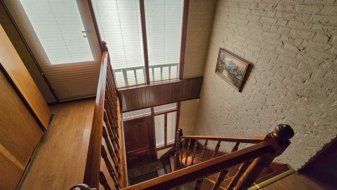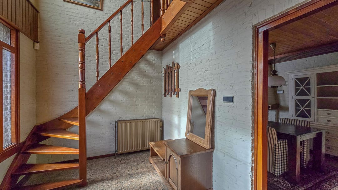 De ruime entree met vide is de centrale ruimte naar woonkamer, keuken en de eerste verdieping.