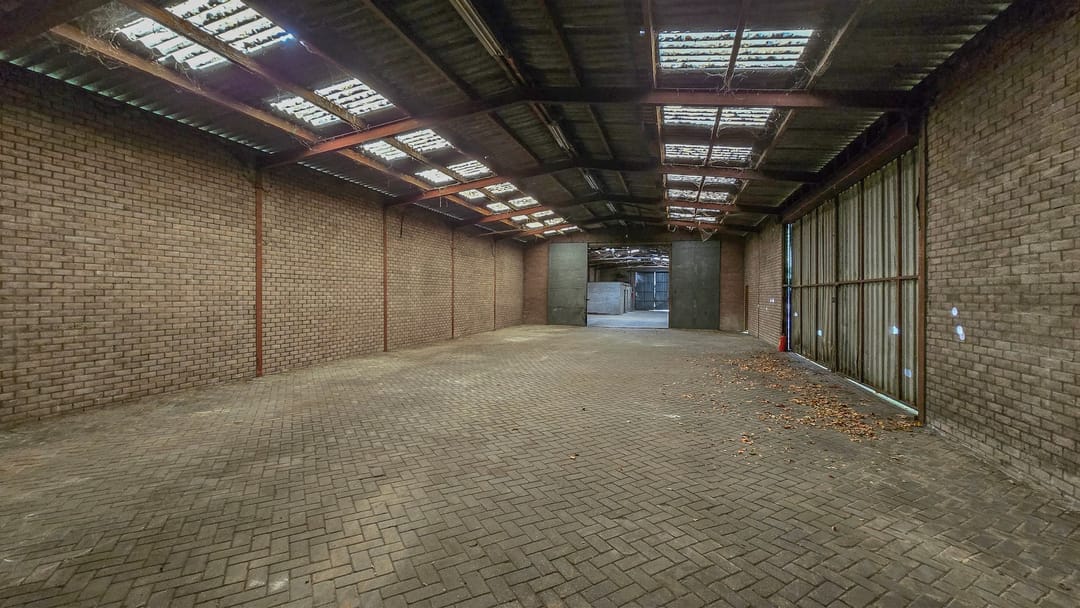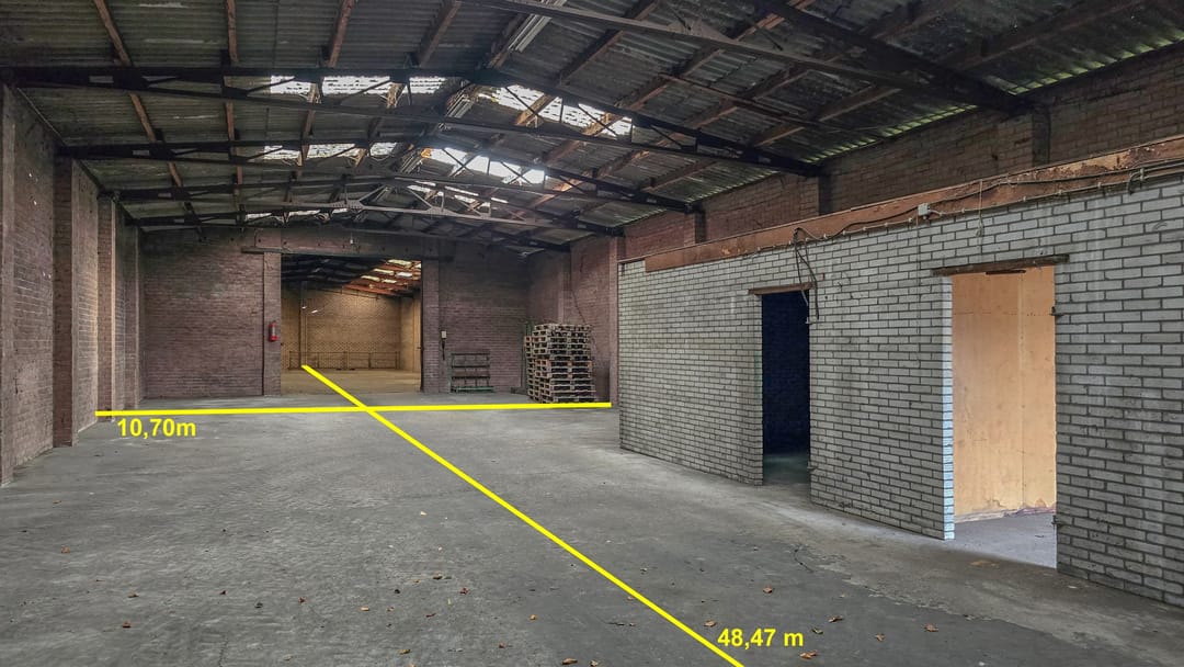 De bedrijfsruimte bestaat uit een garage, bergruimte en 2 loodsen. De vrije hoogte is 410 cm aan de voorzijde en aan de achterzijde is een toegang met een vrije hoogte van 380 cm.