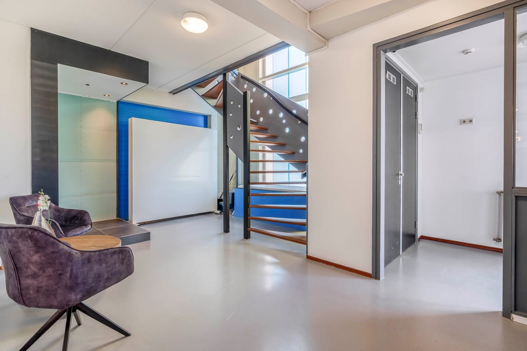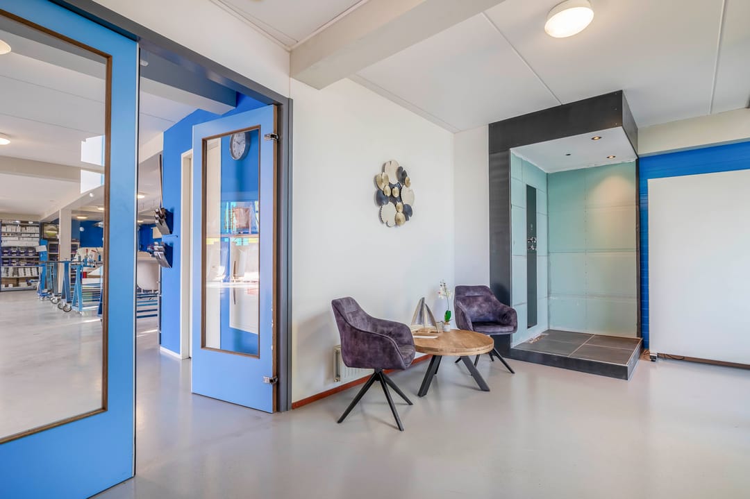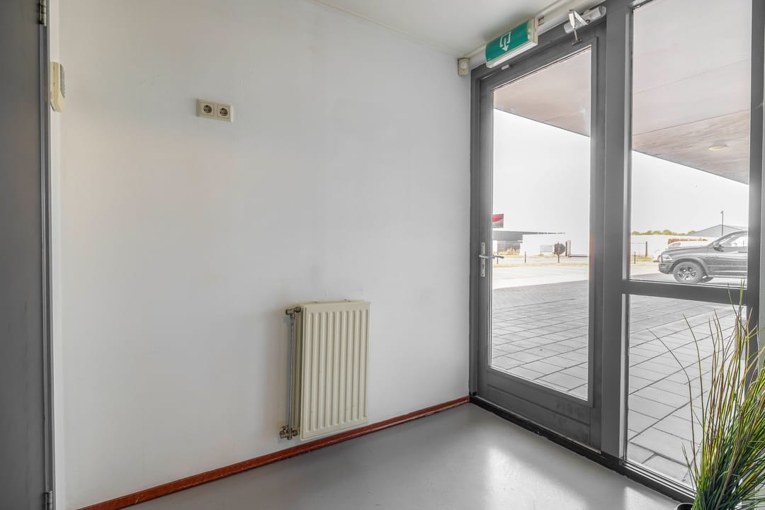 Via de entree komt u binnen in de ontvangstruimte, die toegang biedt tot de verschillende ruimtes in het pand. De royale bedrijfshal van circa 416 m² vormt het hart van het gebouw en biedt volop mogelijkheden voor opslag, productie of logistieke activiteiten. In de hal bevindt zich tevens een verdieping van circa 75 m².