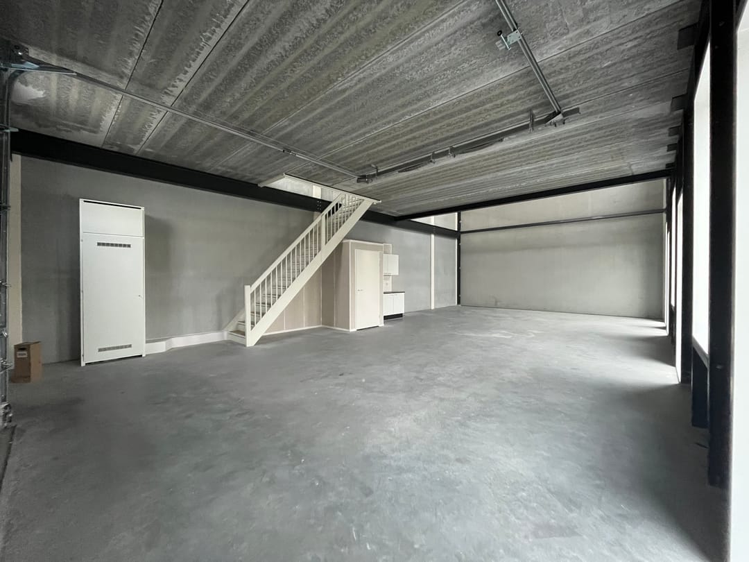 - Overheaddeuren, betonvloer, toilet en pantry
