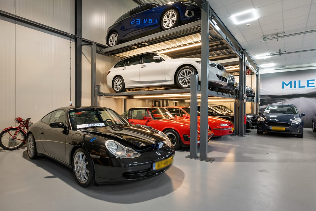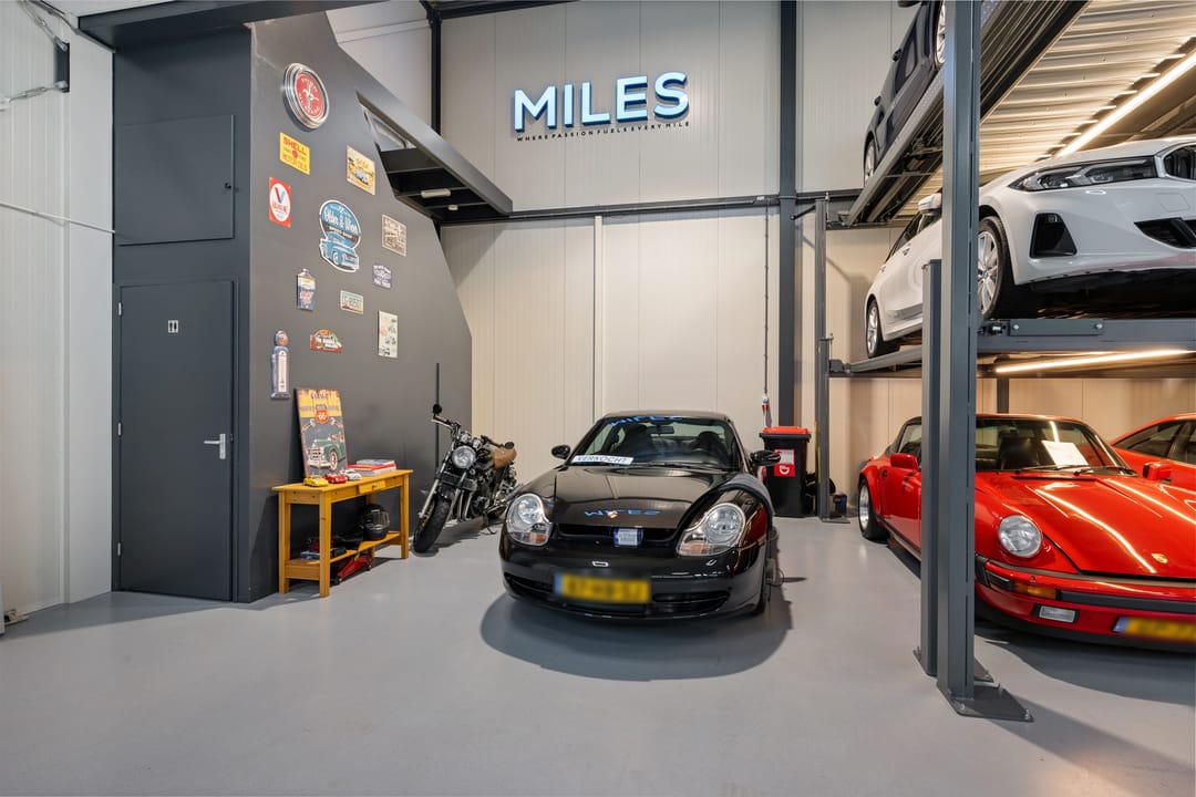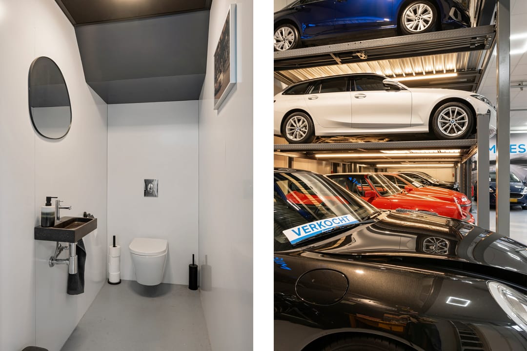 - Inrichting voor stalling en verkoop van auto’s en bijbehorende inventaris, op aanvraag mede te huur of te koop.