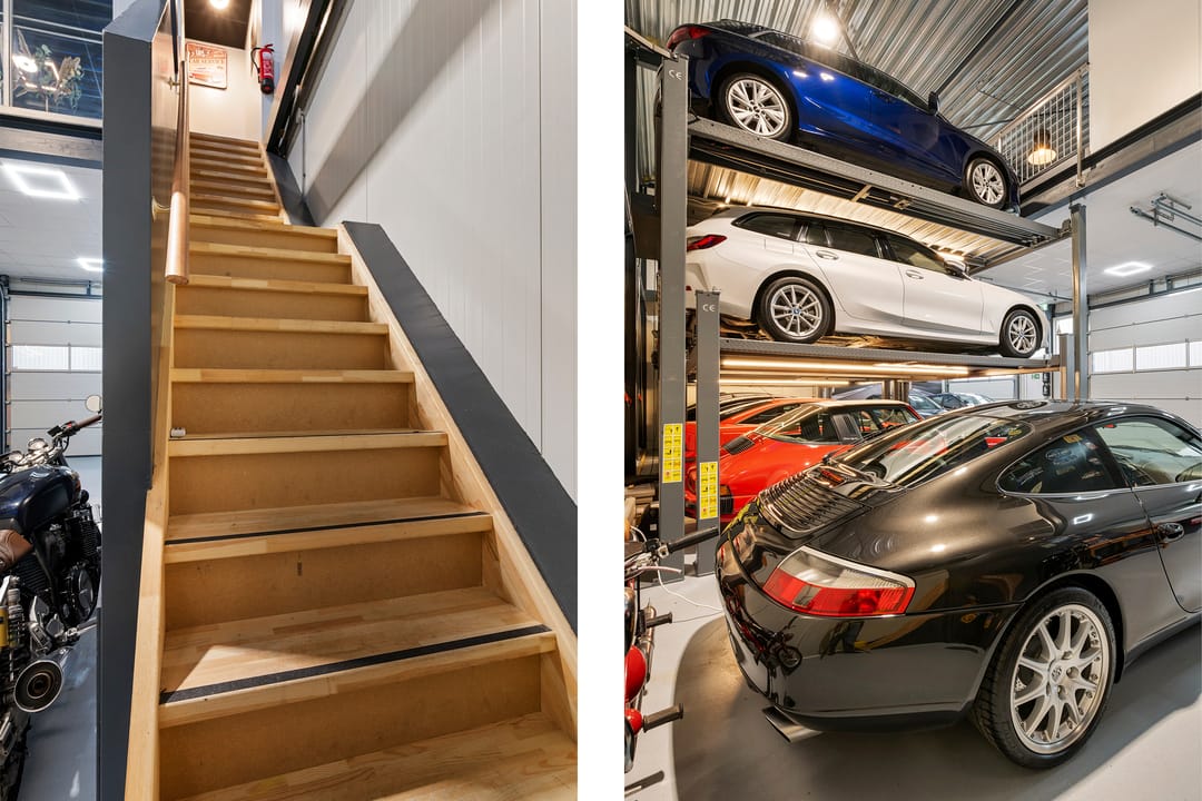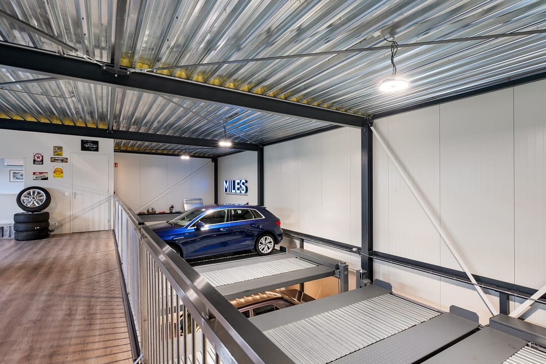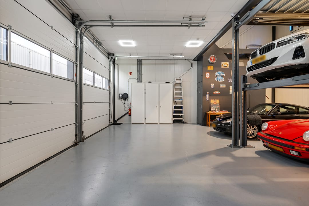 - Voorzien van 3 elektrische overheaddeuren (3,5 x 3,5 meter)