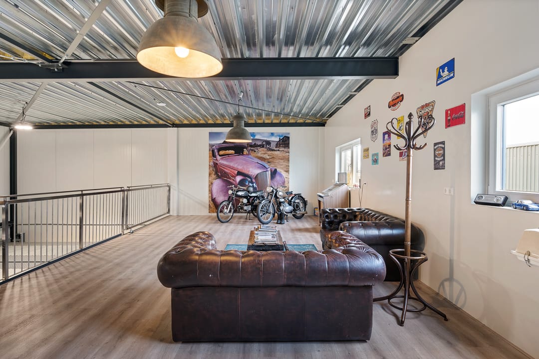 - Airconditioning, overheaddeuren, krachtstroom, betonvloer, heater, toilet, pantry en te openen ramen