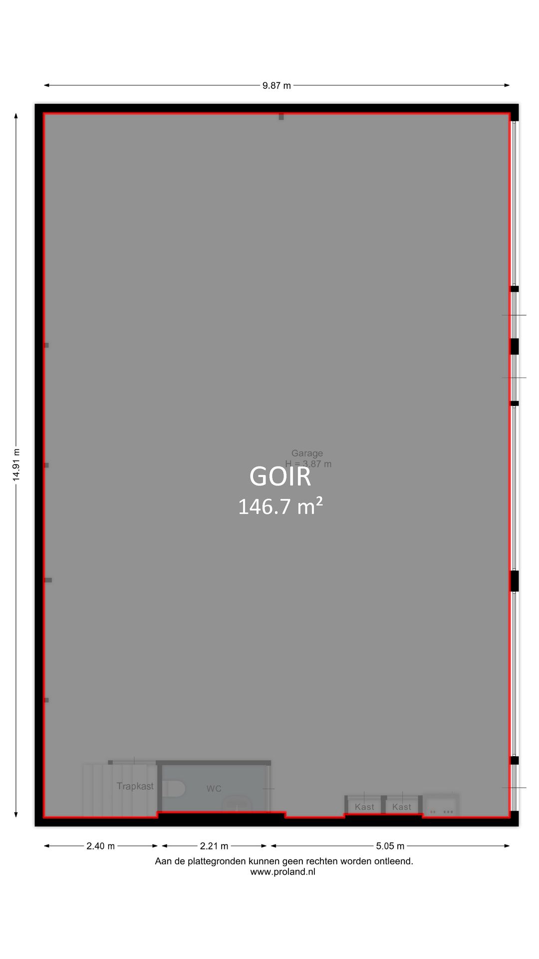 Ca. 225 m² met uitbreidingsmogelijkheden.