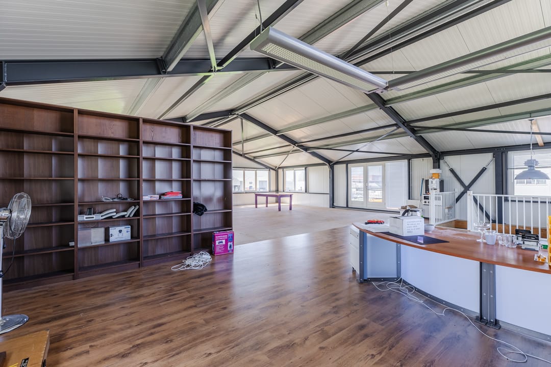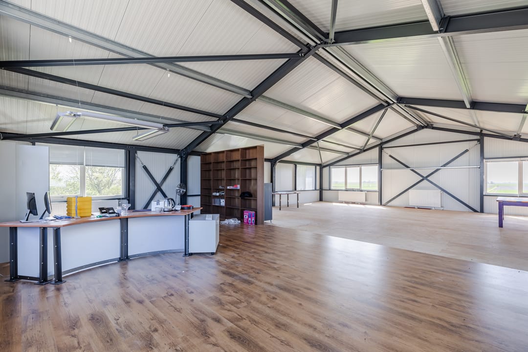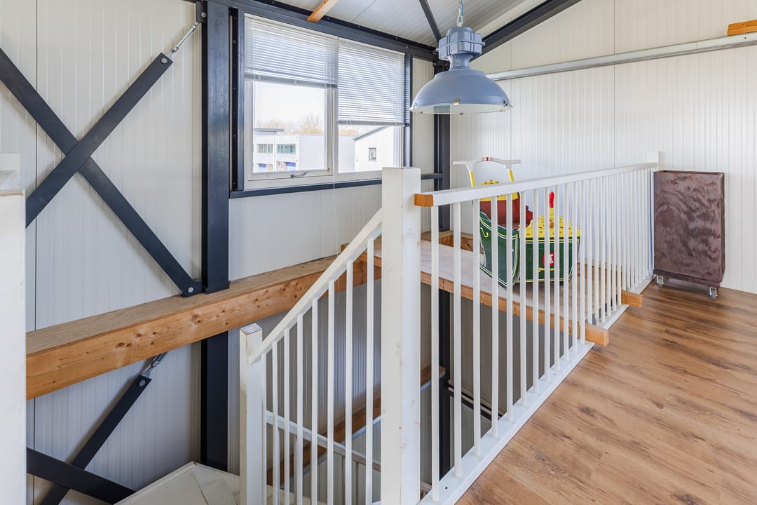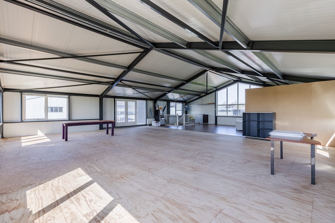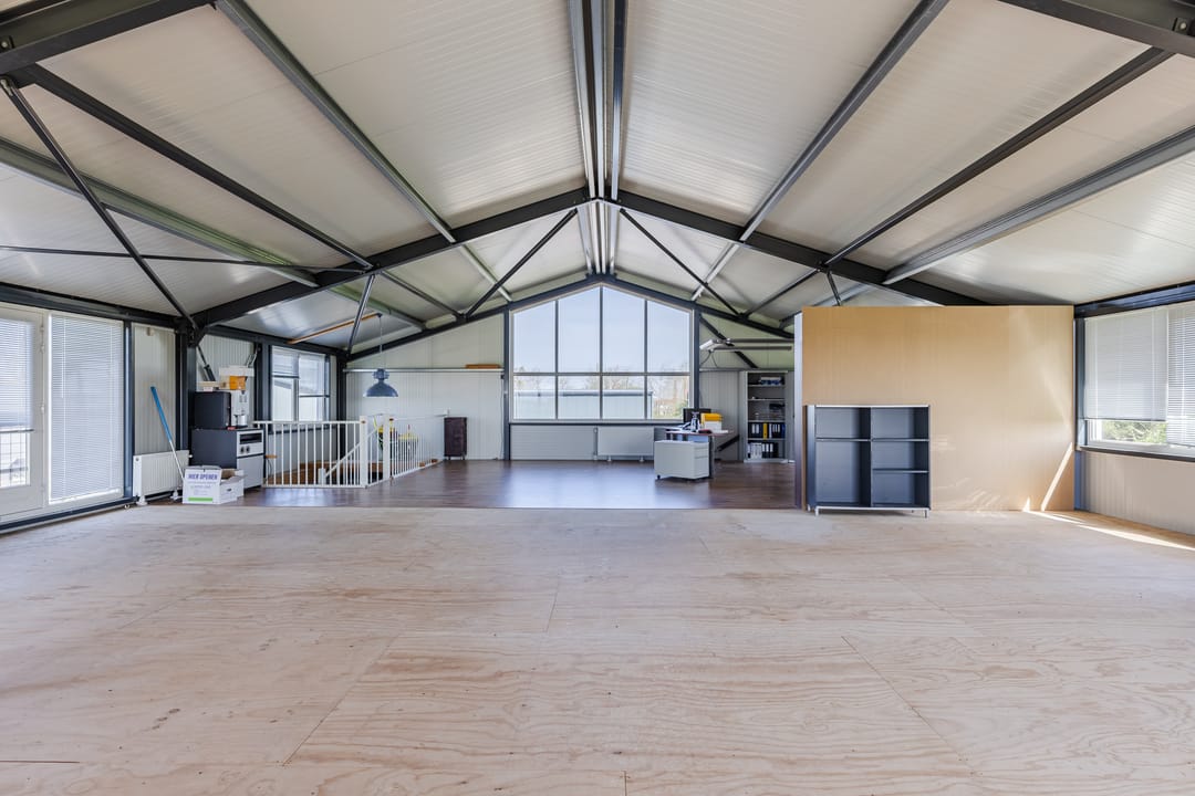 De verdieping beschikt over grote raampartijen met veel lichtinval. Door de ruime opzet van het bedrijventerrein, ligt het pand niet ingebouwd tussen andere bebouwing, zodat een prettig werkklimaat verzekerd is.