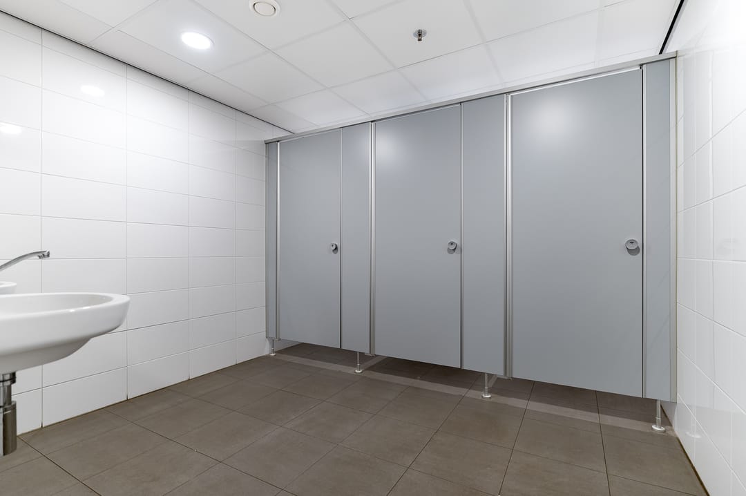 - Gezamenlijk herentoilet v.v. een drietal toiletten met een gezamenlijk voorportaal met handwasbak;
