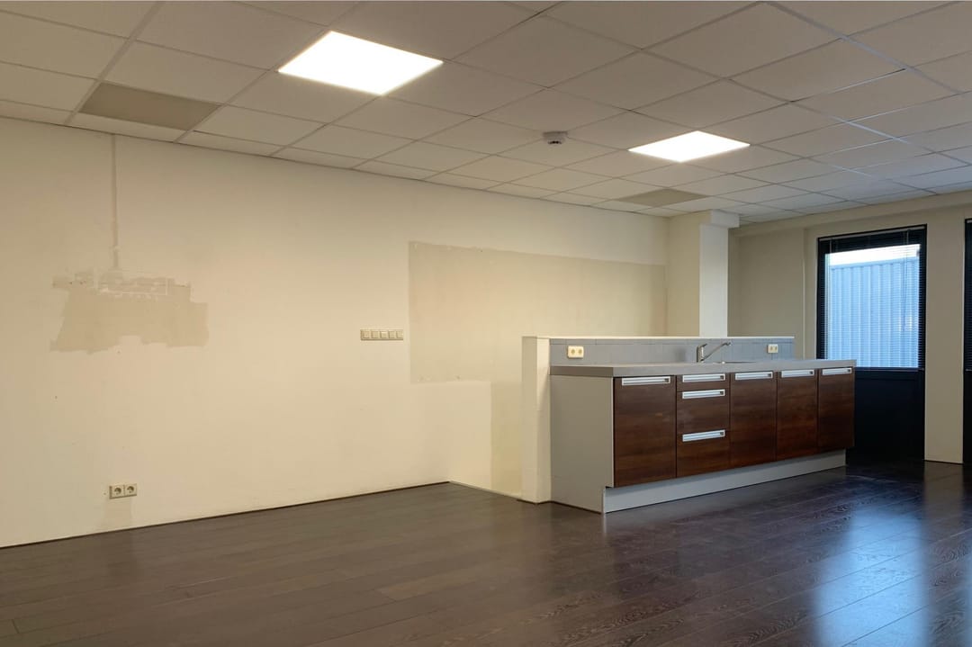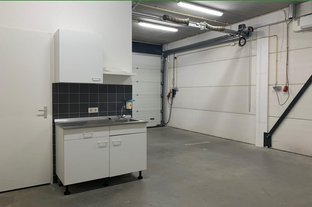 - Airconditioning, overheaddeuren, betonvloer, toilet, pantry, inbouwarmaturen en te openen ramen