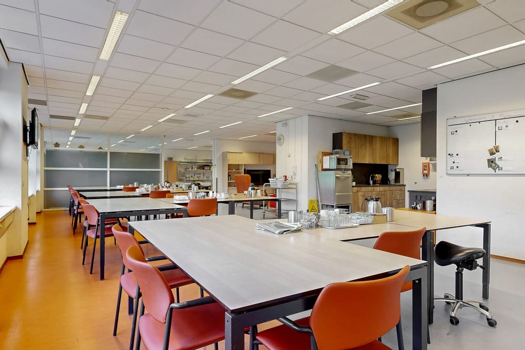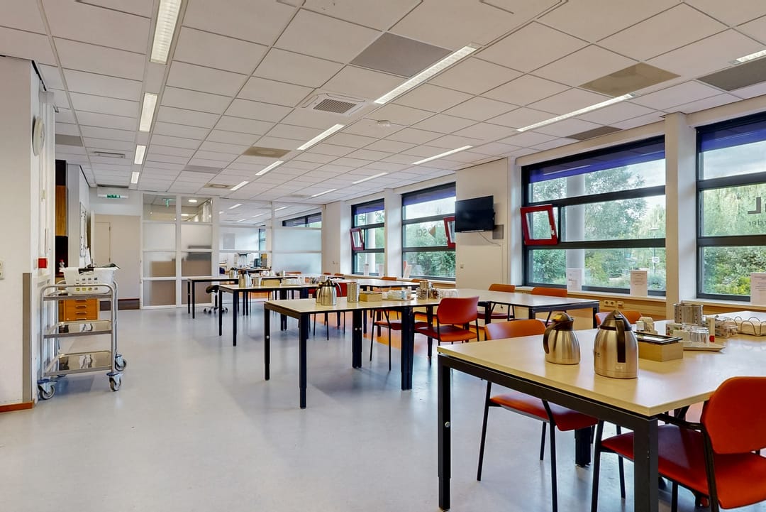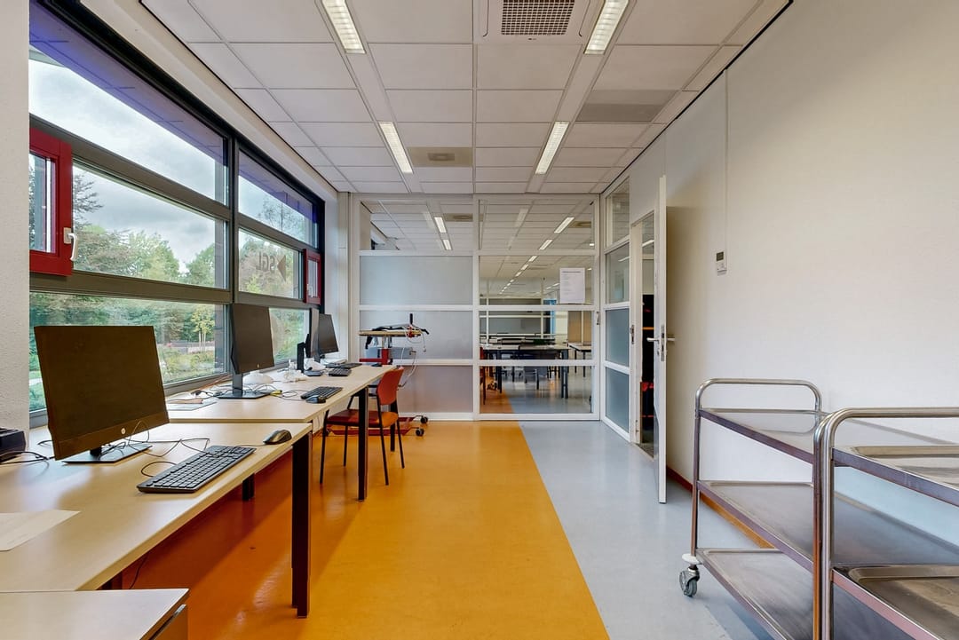 De aanwezigheid van aparte kantoorruimtes maakt het bovendien ideaal voor organisaties die naast groepsruimtes ook individuele werkplekken nodig hebben.