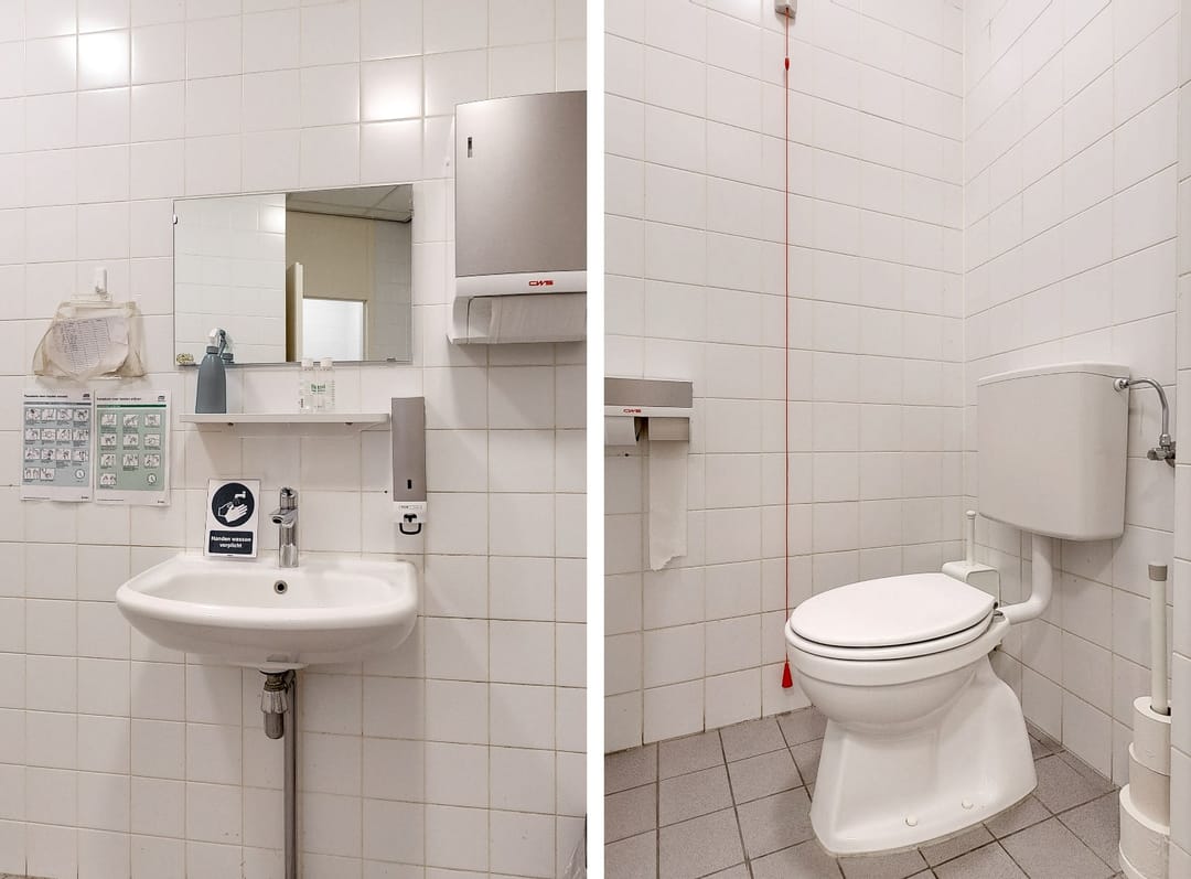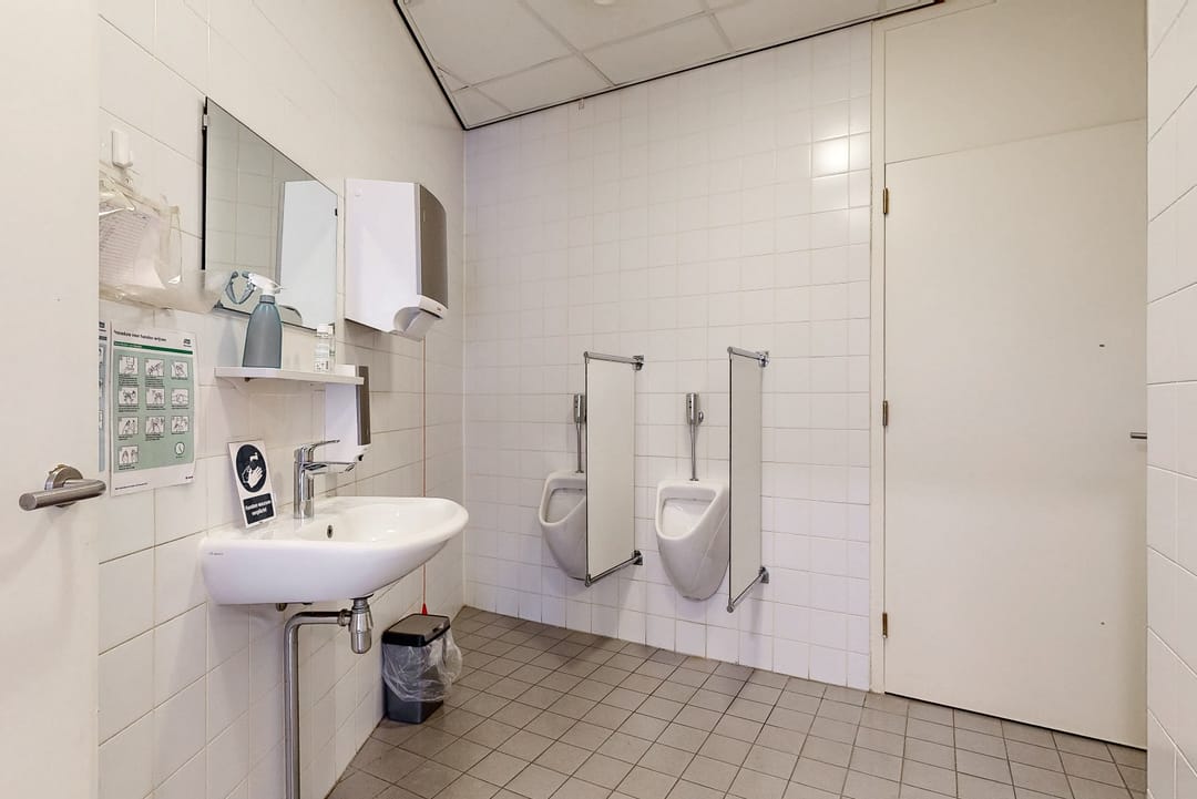 Op de begane grond bevinden zich verder twee geheel betegelde toiletruimtes, waarvan één is uitgerust met een douche. Ook is er een separate wasruimte aanwezig met aansluitingen voor witgoed.