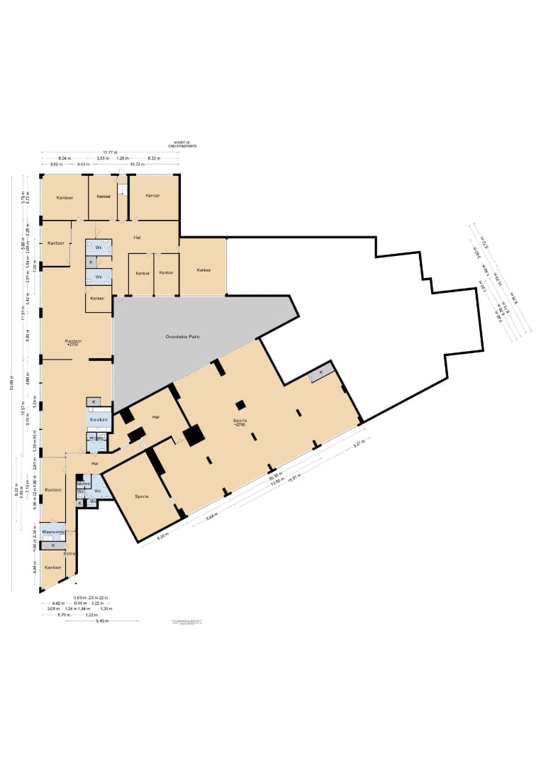 Ruimtes variëren in oppervlakte van 16 m² tot ± 330 m²