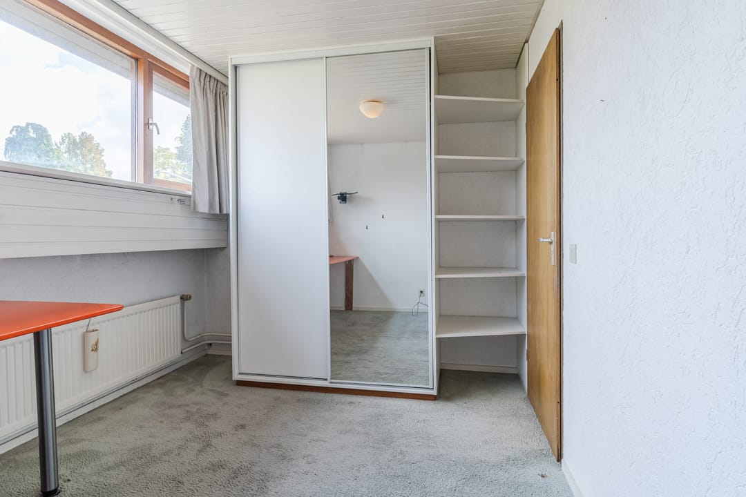 Slaapkamer (ca. 4.89m x 3.90m) voorzien van vloerstoffering, centrale verwarming, bergkast en trapopgang naar de vliering.