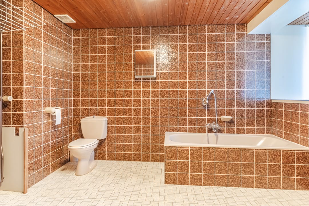 Geheel betegeld toilet met fonteintje.