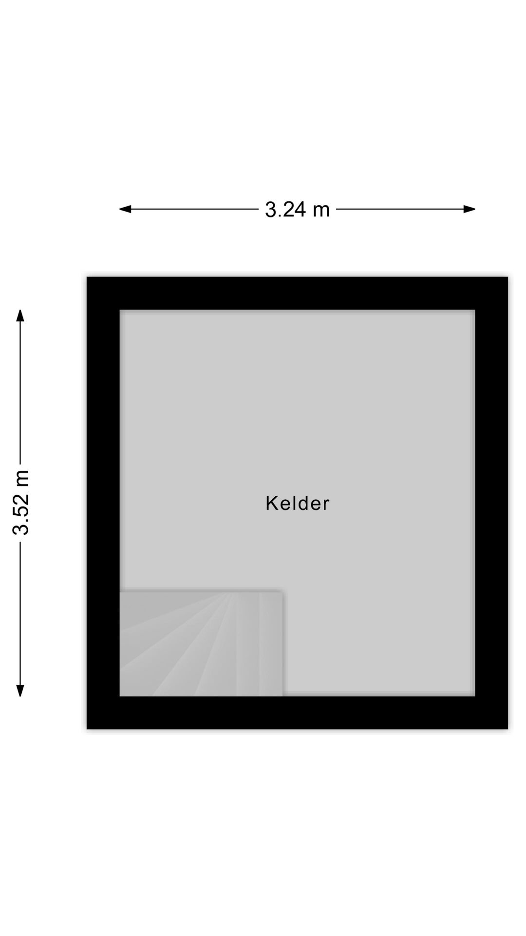 Zeer ruime kelder met tegelvloer en stellingen.