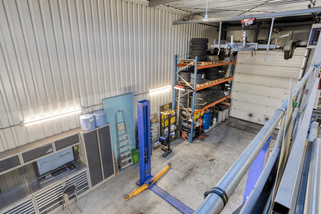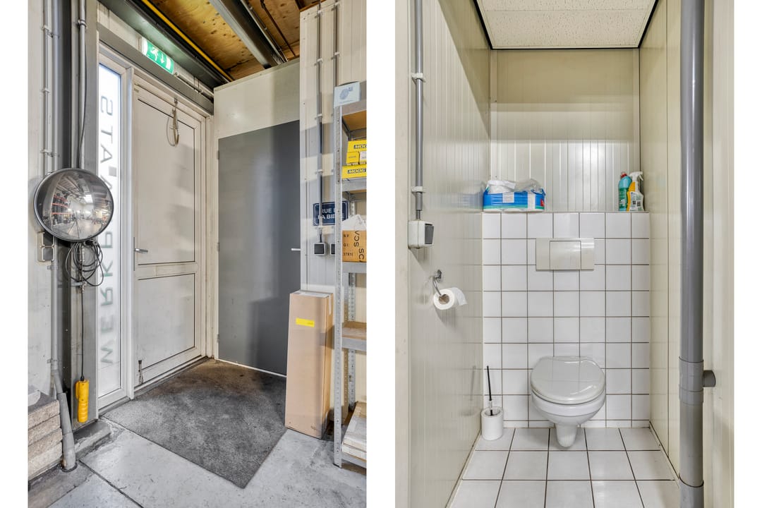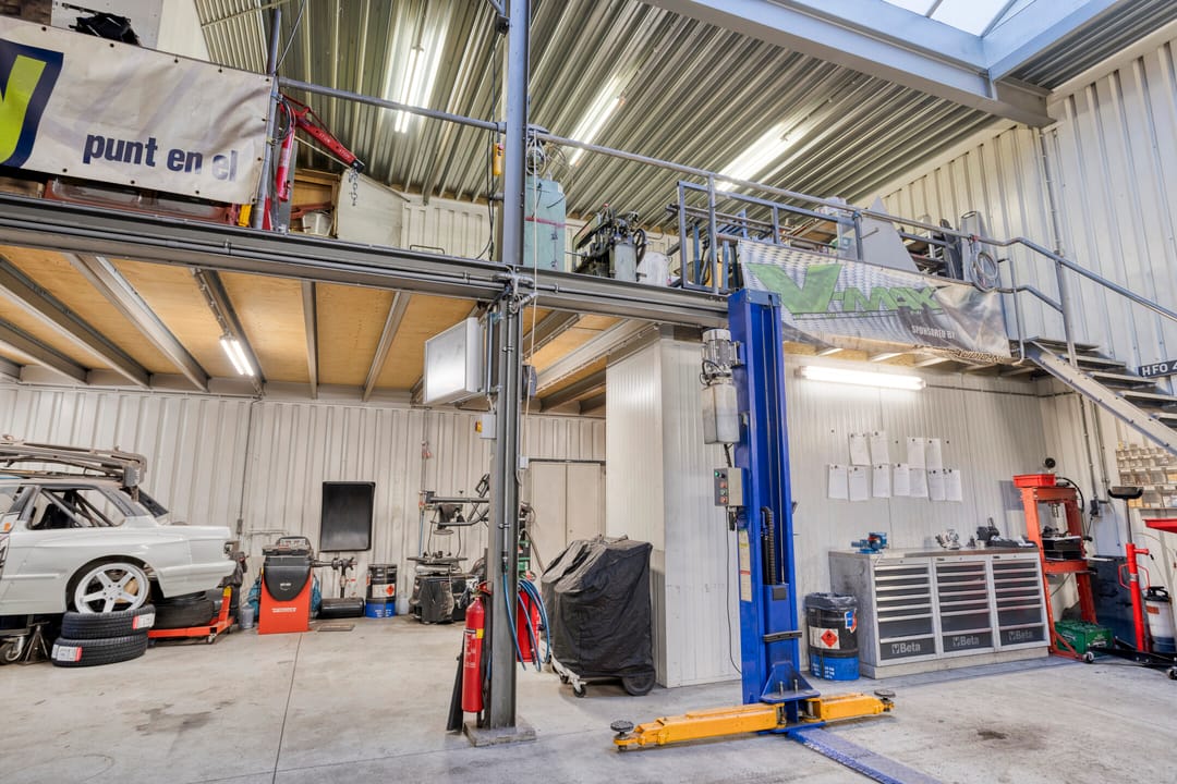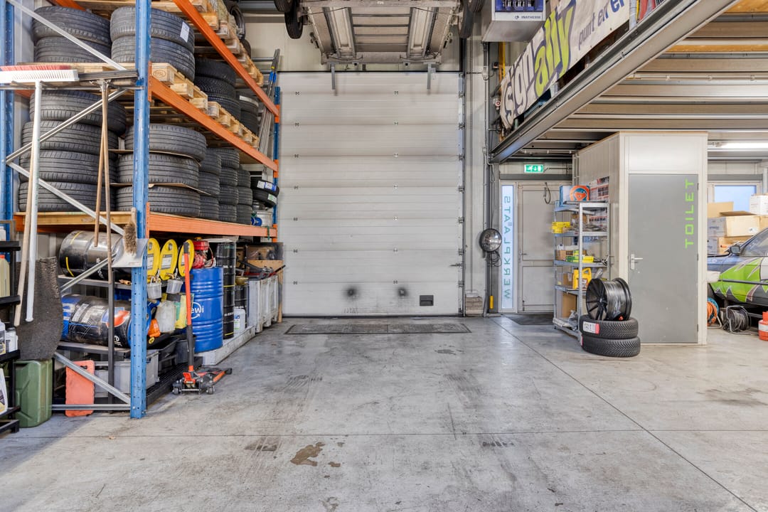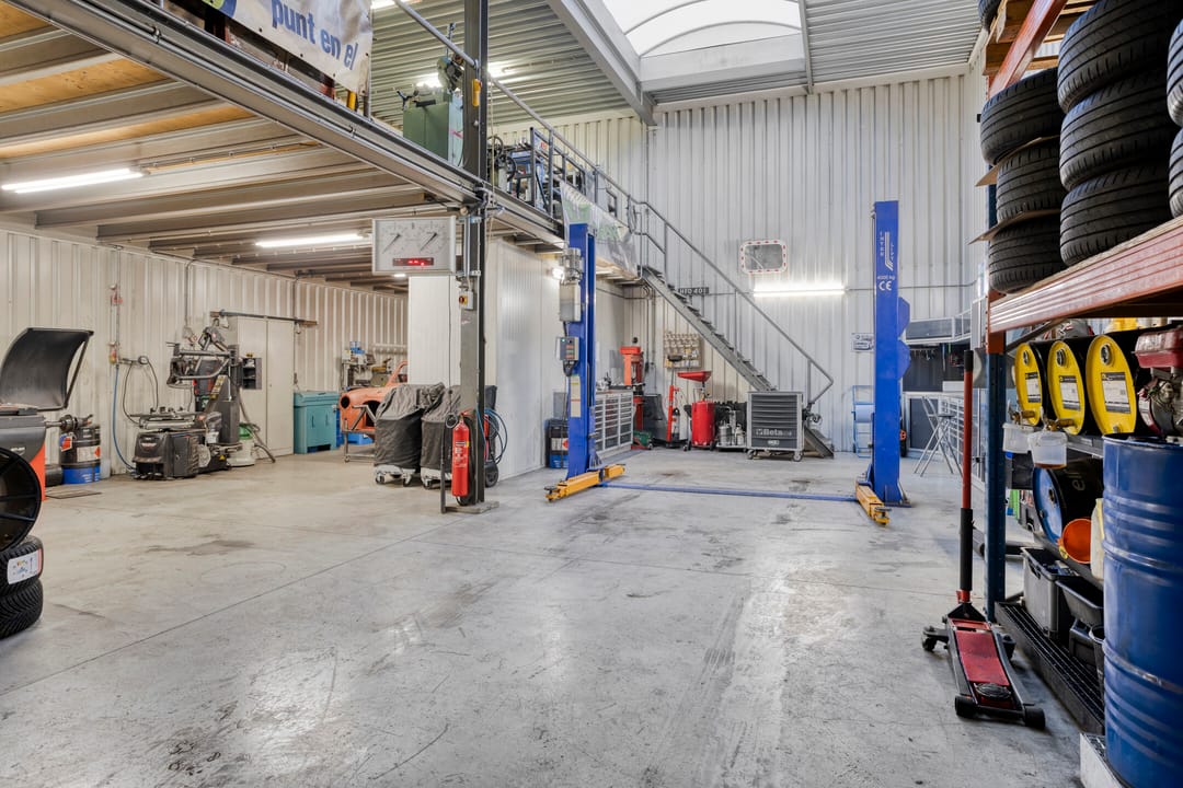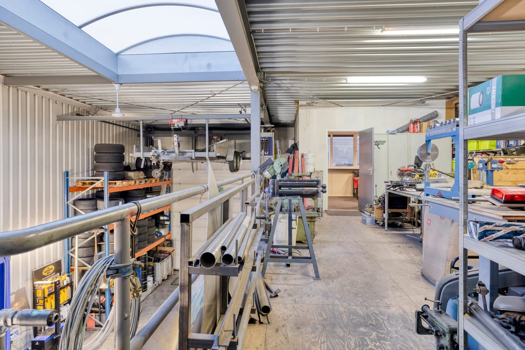 Via de entree komt u binnen in de bedrijfsunit met meterkast en toiletruimte. De begane grond is ingericht als open werkplaats en biedt volop ruimte voor diverse bedrijfsactiviteiten. De aanwezige autobrug kan eventueel, in overleg, achterblijven.