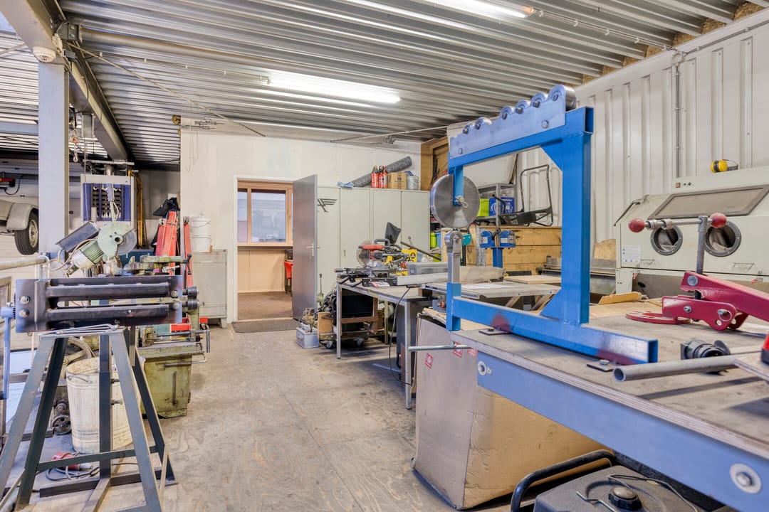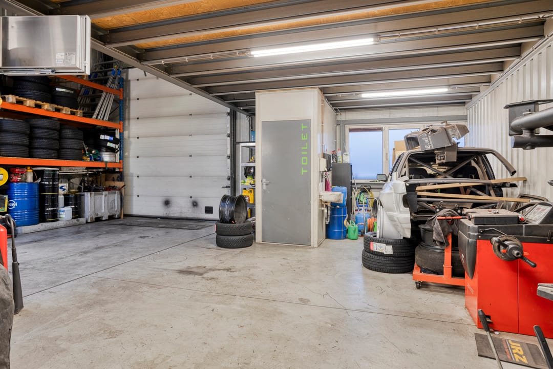 - Lichtstraten, overheaddeuren, krachtstroom, betonvloer, heater, toilet, pantry en te openen ramen