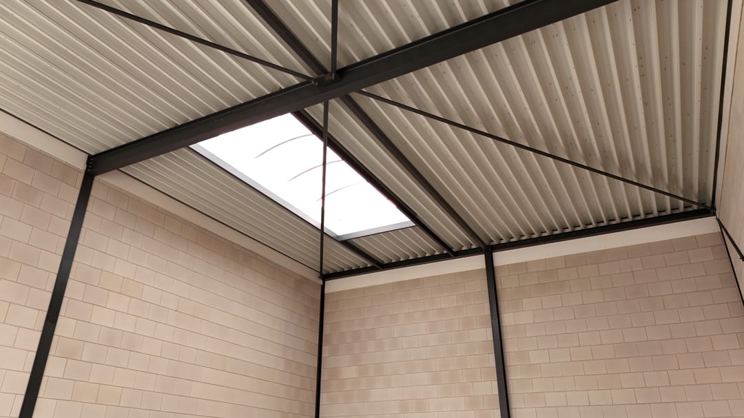 Wat meteen opvalt, is het daklicht van circa 2 bij 5 meter. Dat zorgt voor een zee aan daglicht. De combinatie met de aangebrachte LED-verlichting maakt de ruimte extra prettig om in te werken. Licht doet een hoop – het geeft energie en zorgt voor een prettige sfeer.