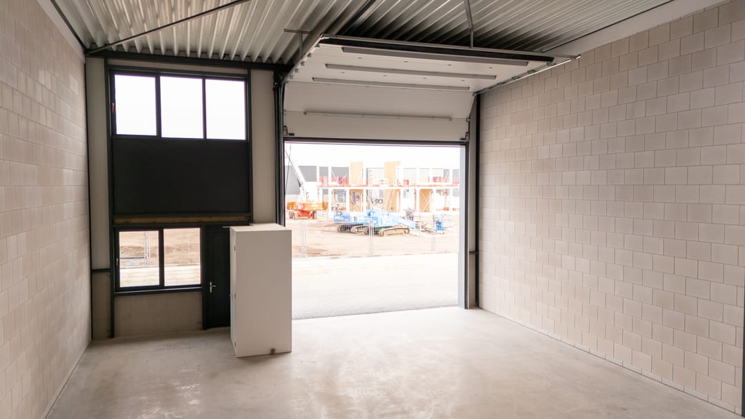 De unit is voorzien van een brede sectionaaldeur van zo’n 5 meter breed en 4,5 meter hoog. Dat maakt het aanrijden met voertuigen of groot materieel wel zo makkelijk. Of je nu opslagruimte zoekt, een werkplaats of iets anders, hier kun je alle kanten op. Er zijn een toiletruimte aanwezig en een spoelbak met koud en warm (boiler) water.