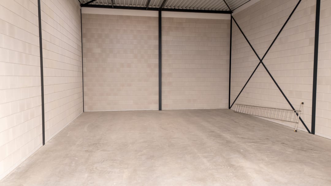 - Lichtstraten, overheaddeuren, krachtstroom, betonvloer en toilet