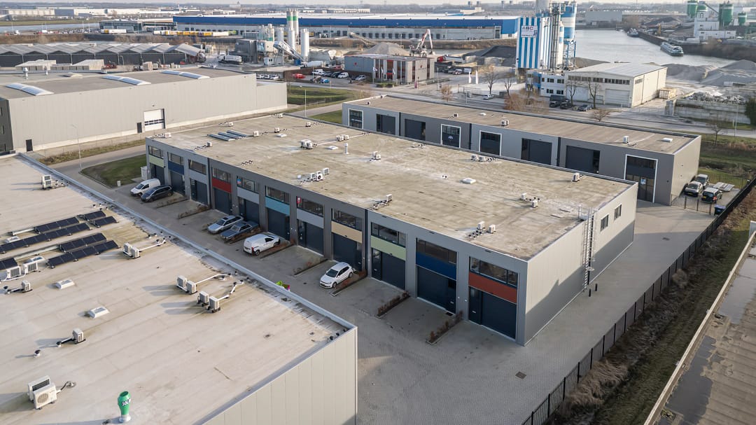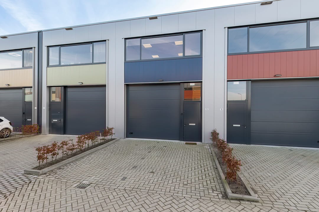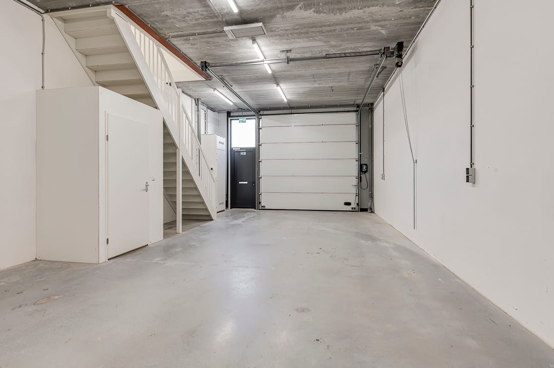 - Overheaddeuren, betonvloer, toilet, pantry, airconditioning, inbouwarmaturen en te openen ramen