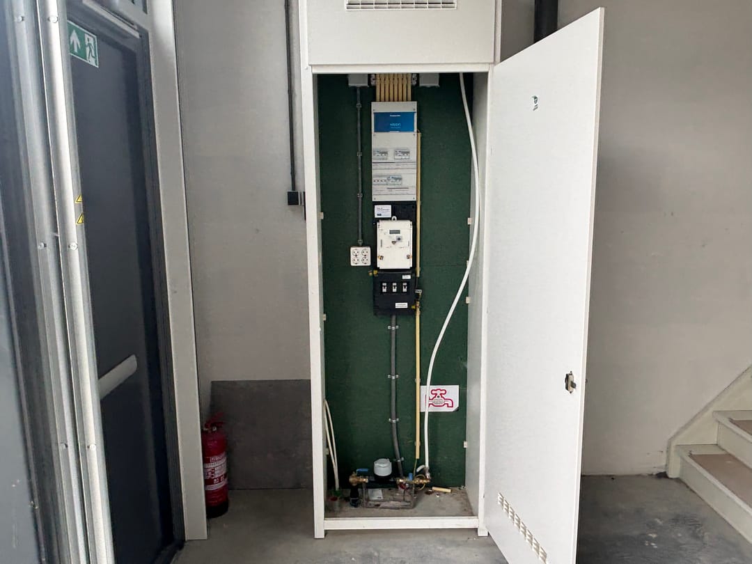 - Overheaddeuren, krachtstroom, betonvloer, toilet, pantry, airconditioning, inbouwarmaturen en te openen ramen