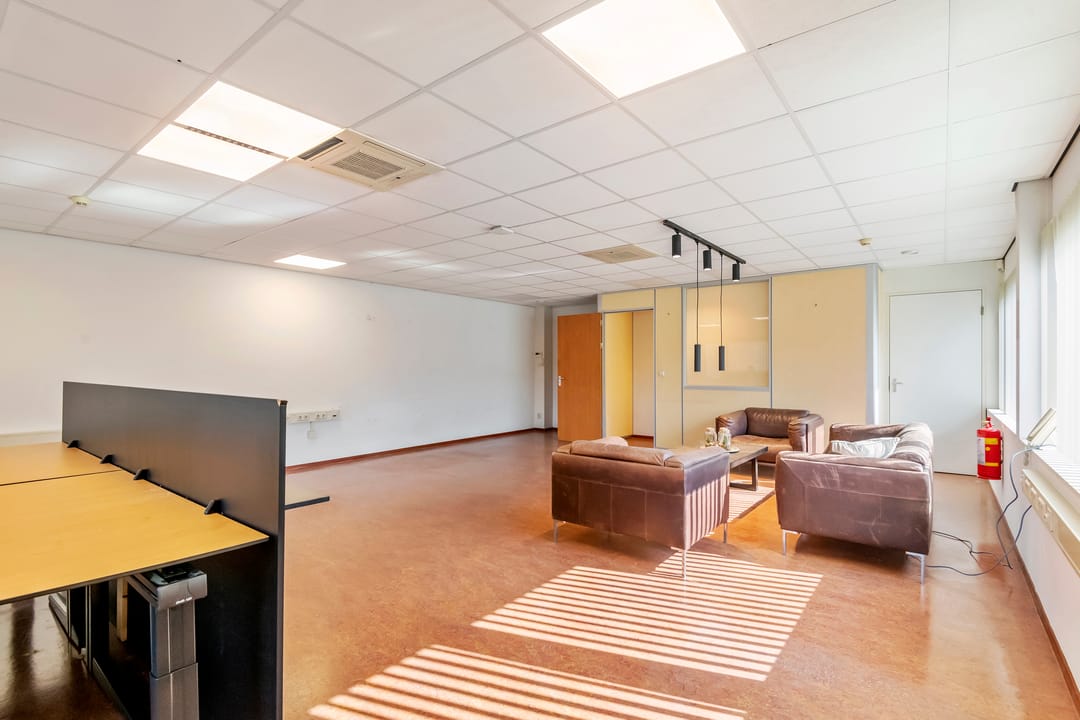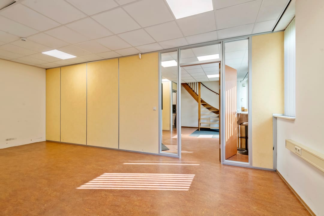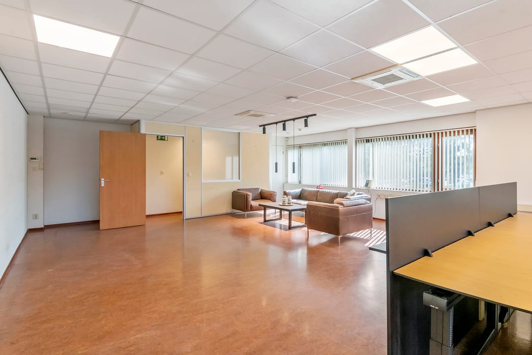 1e verdieping: royale, open kantoorruimte met veel daglicht en ramen aan 2 zijden (circa 68 m²), airco aanwezig